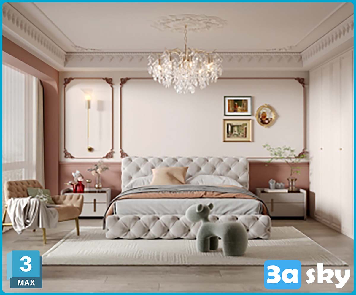 This 3D scene model, created in 3DS MAX, features a beautifully detailed architectural visualization. The rendering showcases a blend of modern design elements and realistic textures, making it ideal for architectural and interior design projects. Explore the intricate details and high-quality rendering of this 3D scene model.