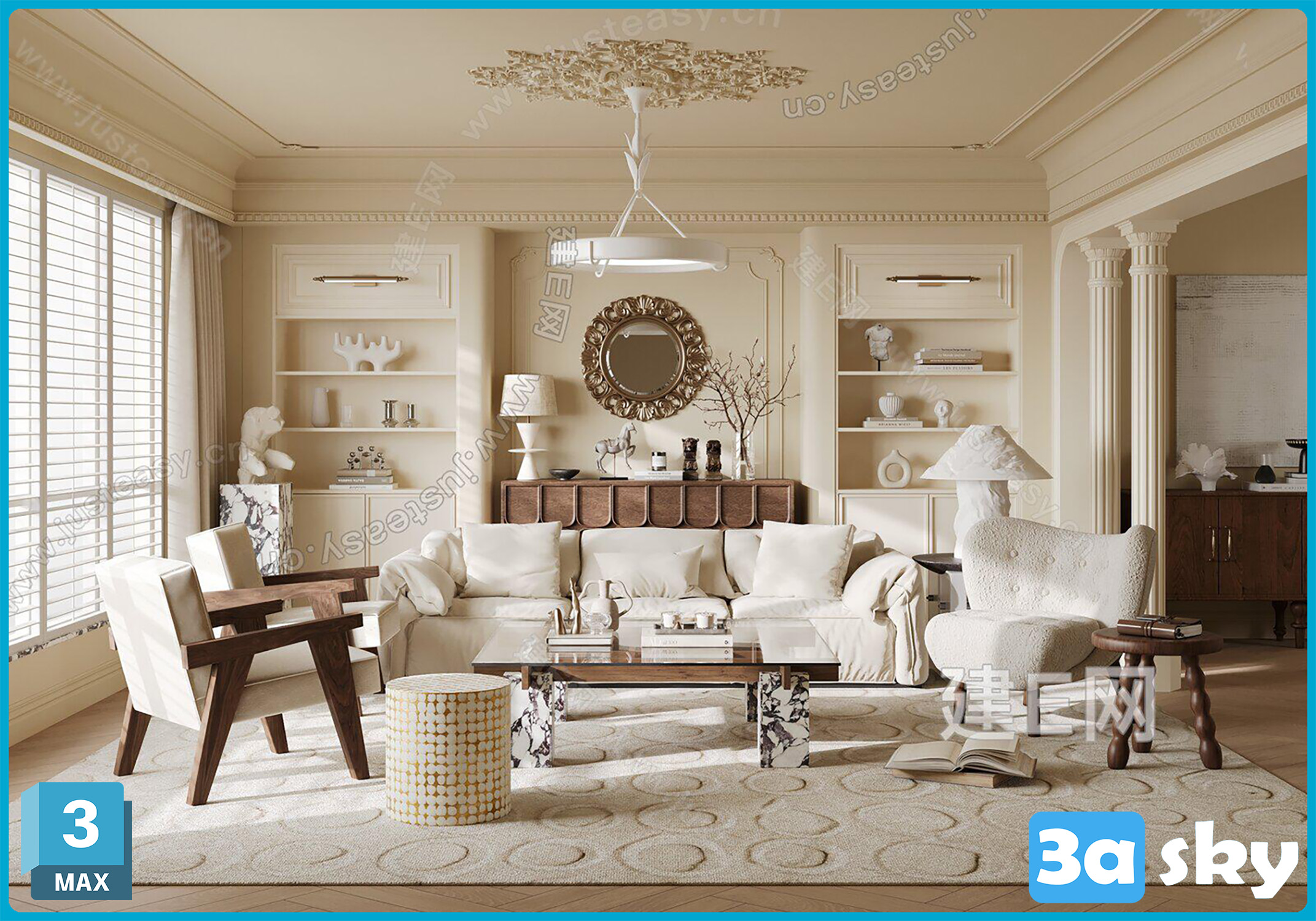 This 3D scene model, created in 3DS MAX, features a beautifully detailed interior design with realistic textures and lighting. Perfect for architectural visualization and interior design projects. Explore the intricate details and high-quality rendering of this stunning 3D scene.