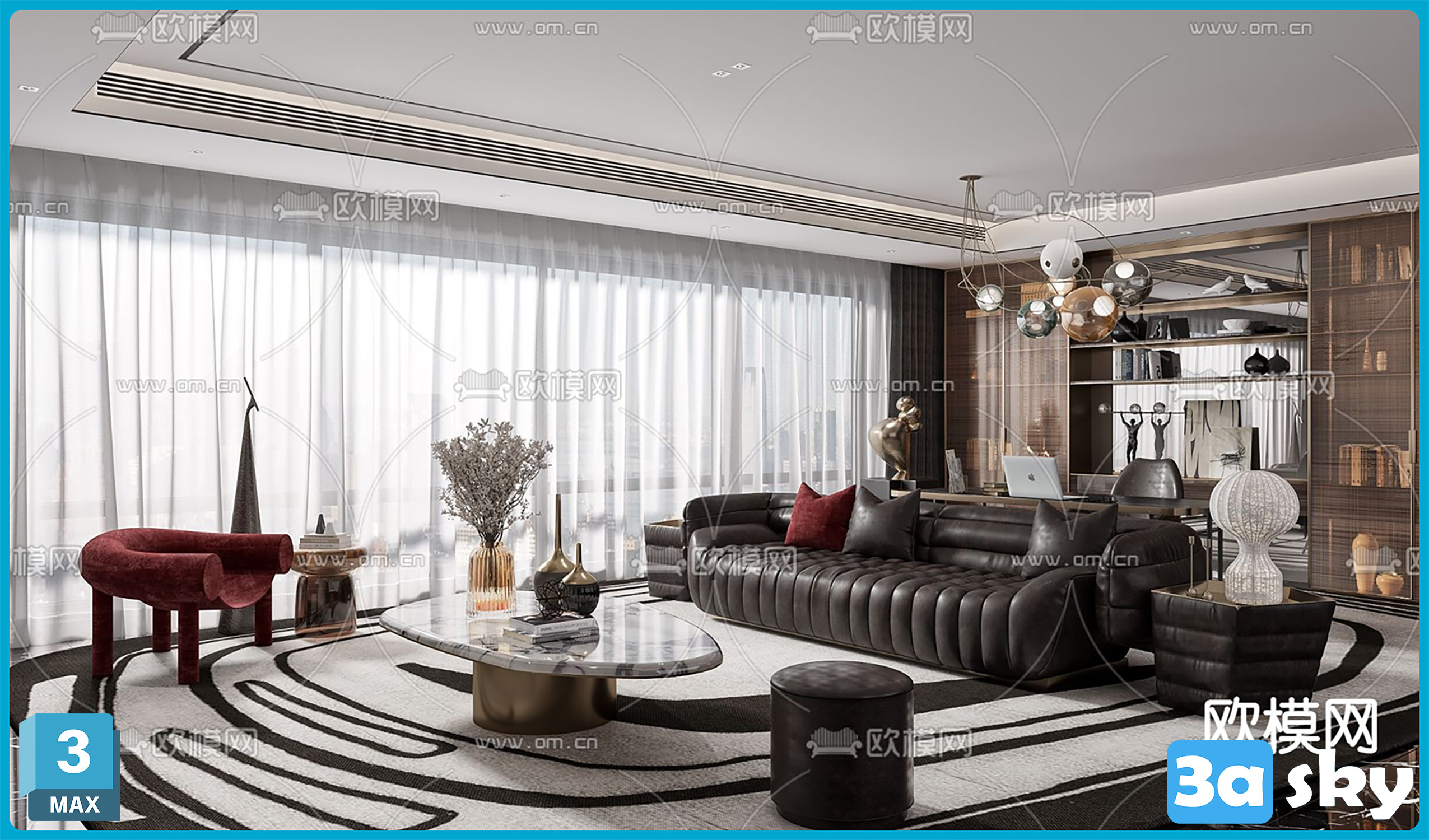 V_现代客厅3d模型 ID-11885330.rar