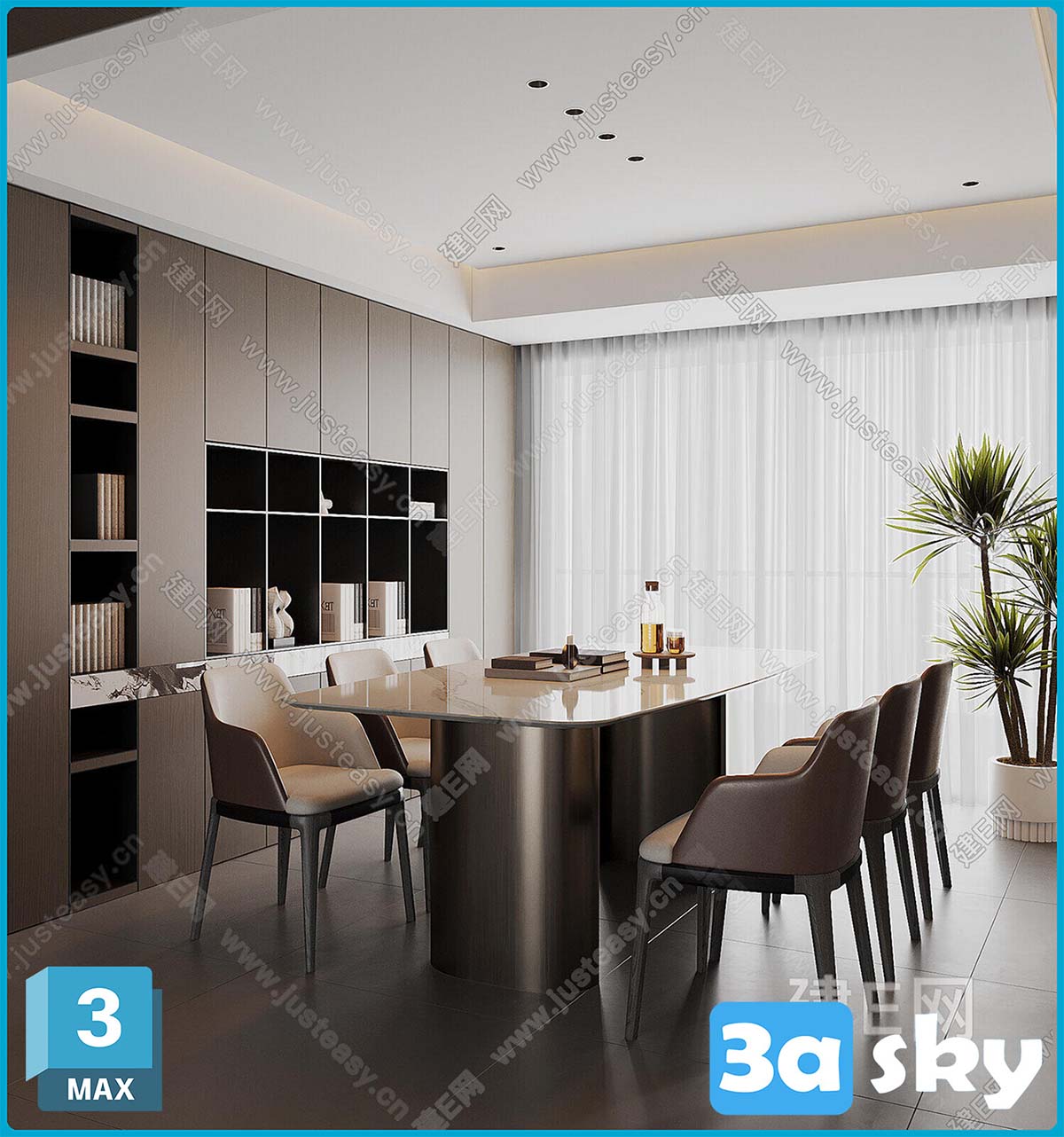 This 3D scene model, created in 3DS MAX, features a beautifully detailed interior design with realistic textures. The high quality 3D rendering captures the intricate details of the architecture, making it a perfect choice for architectural visualization projects.