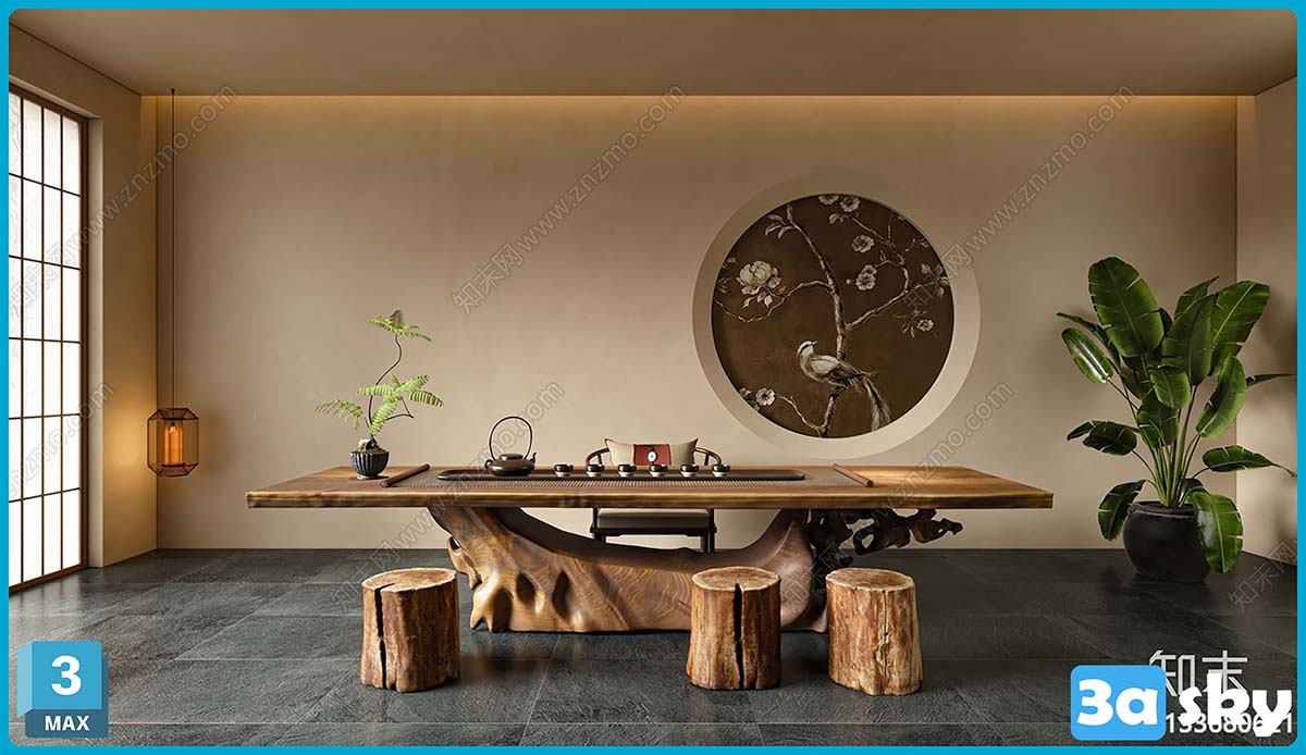 This 3D scene model, created in 3DS MAX, features a beautifully detailed interior design with realistic textures. The high quality 3D rendering captures the intricate details of the architecture, making it a perfect choice for architectural visualization projects.