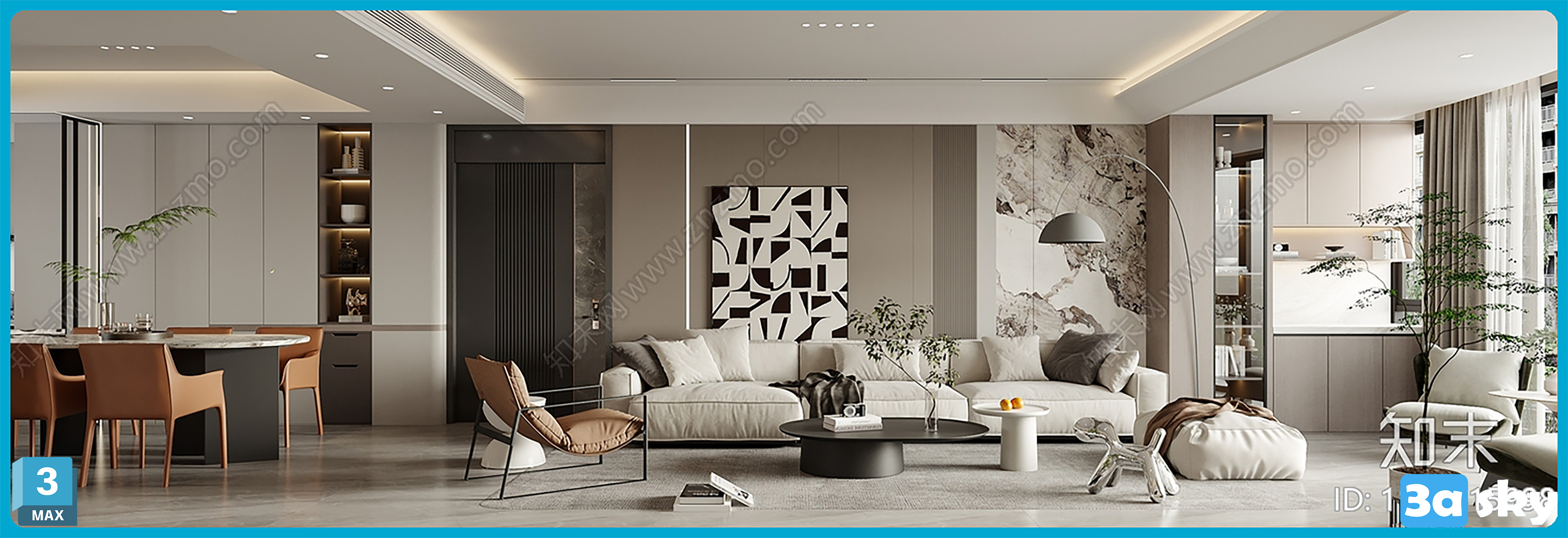 This 3D scene model, created in 3DS MAX, features a beautifully detailed interior design with realistic textures and lighting. The architecture and visualization in this scene demonstrate the capabilities of 3D rendering technology in creating immersive and lifelike environments.