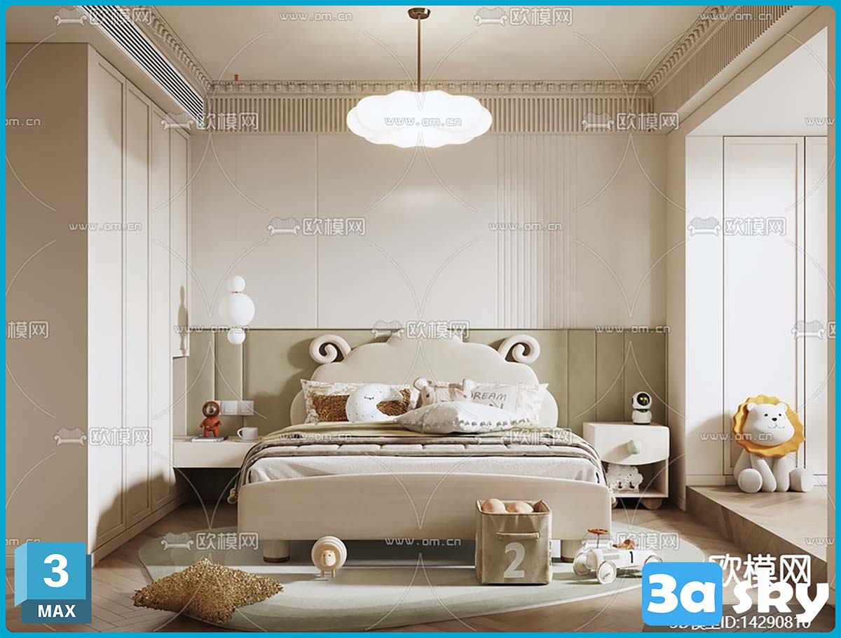 V_奶油风儿童房小孩房3d模型ID-14290810.rar