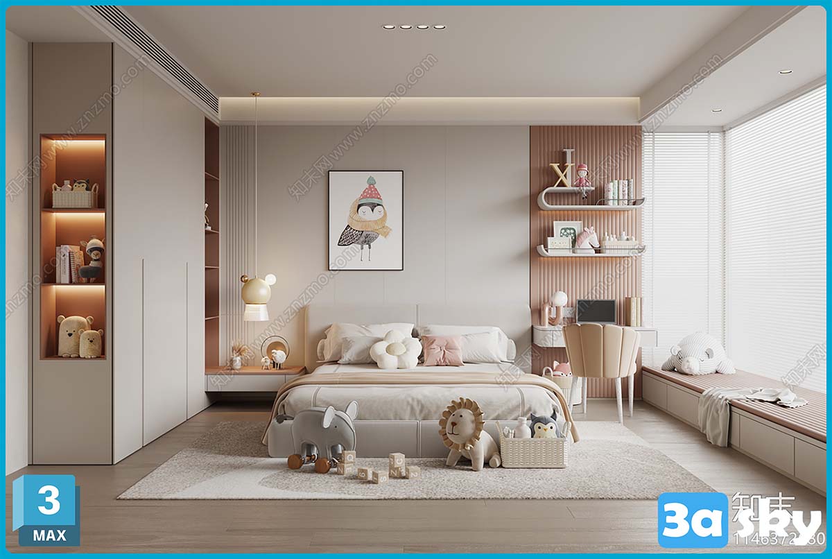 This 3D scene model, created in 3DS MAX, features a beautifully detailed interior design with realistic textures. The high quality 3D rendering showcases the intricate details of the architecture, making it a perfect choice for architectural visualization projects.