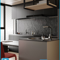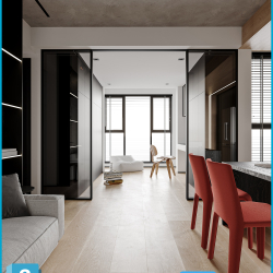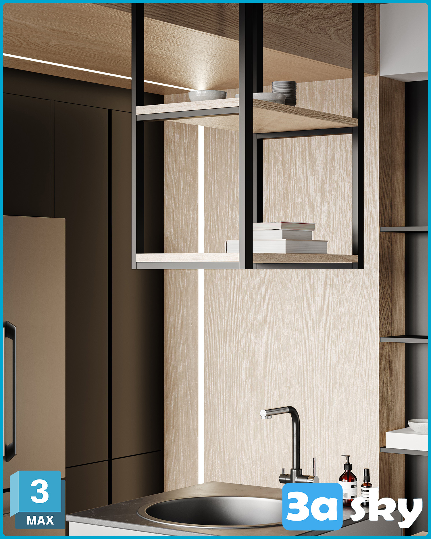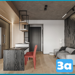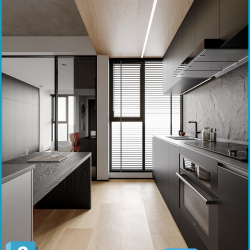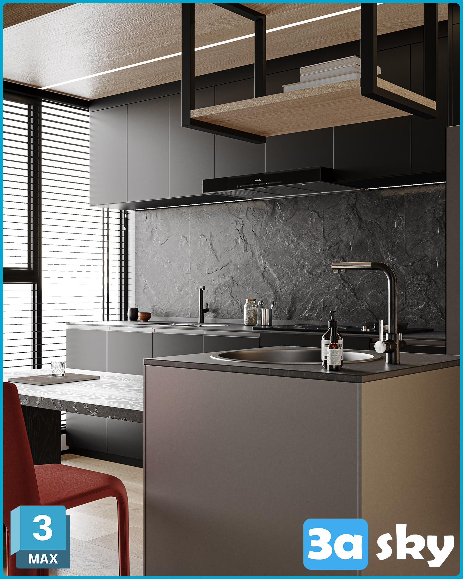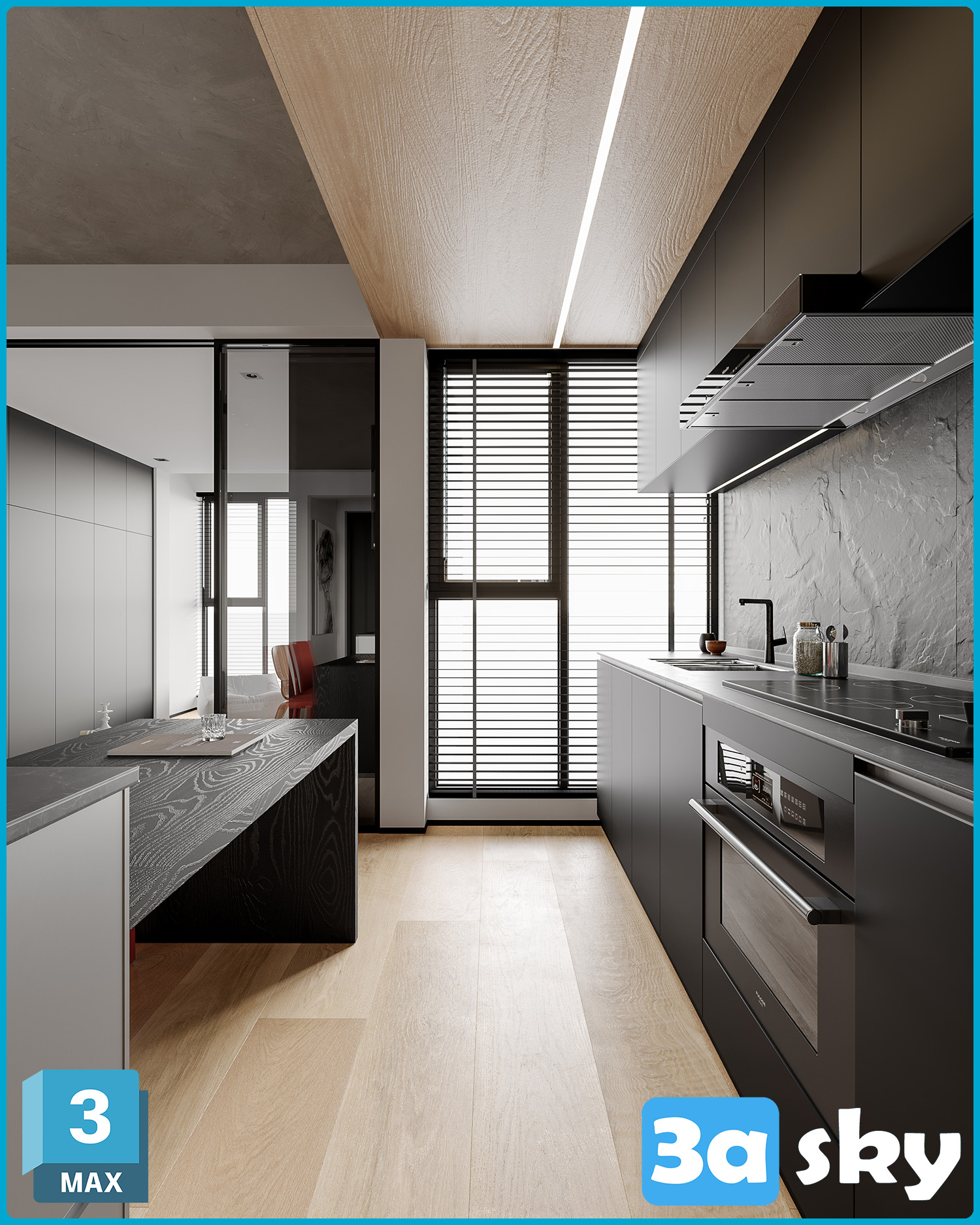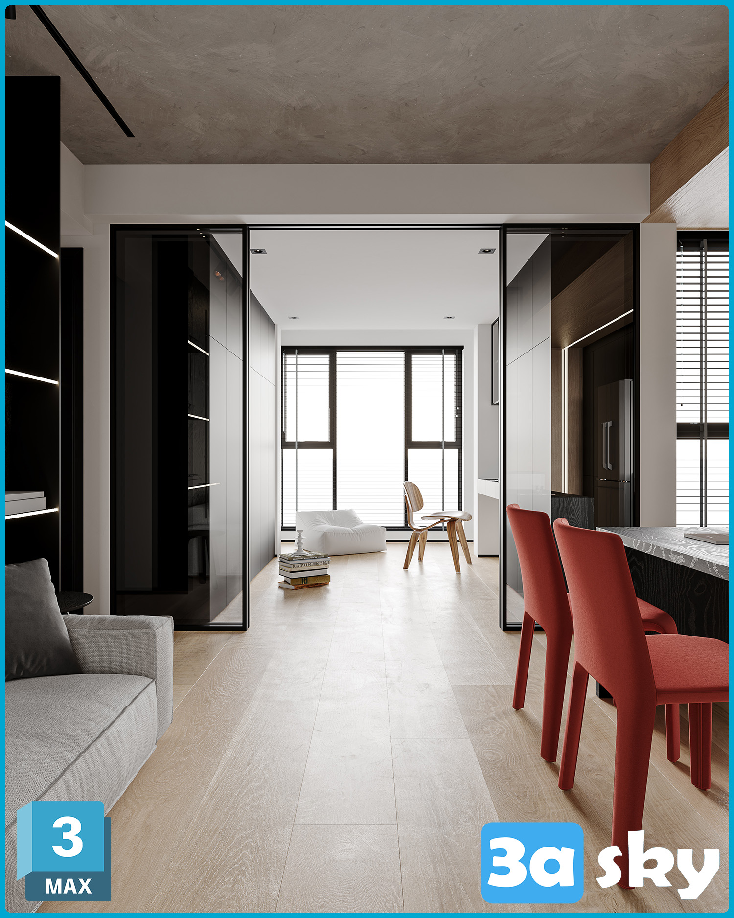 This 3D scene showcases a modern home interior, featuring contemporary design elements and architecture. The scene was created using 3DS MAX software, providing a realistic and detailed representation of a stylish living space.