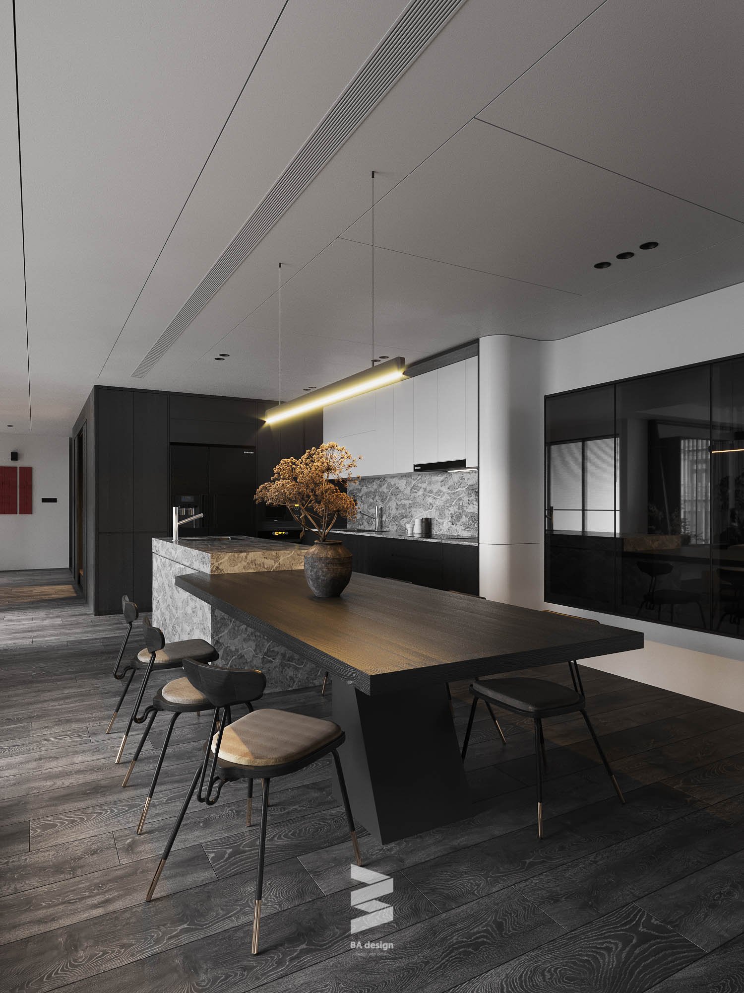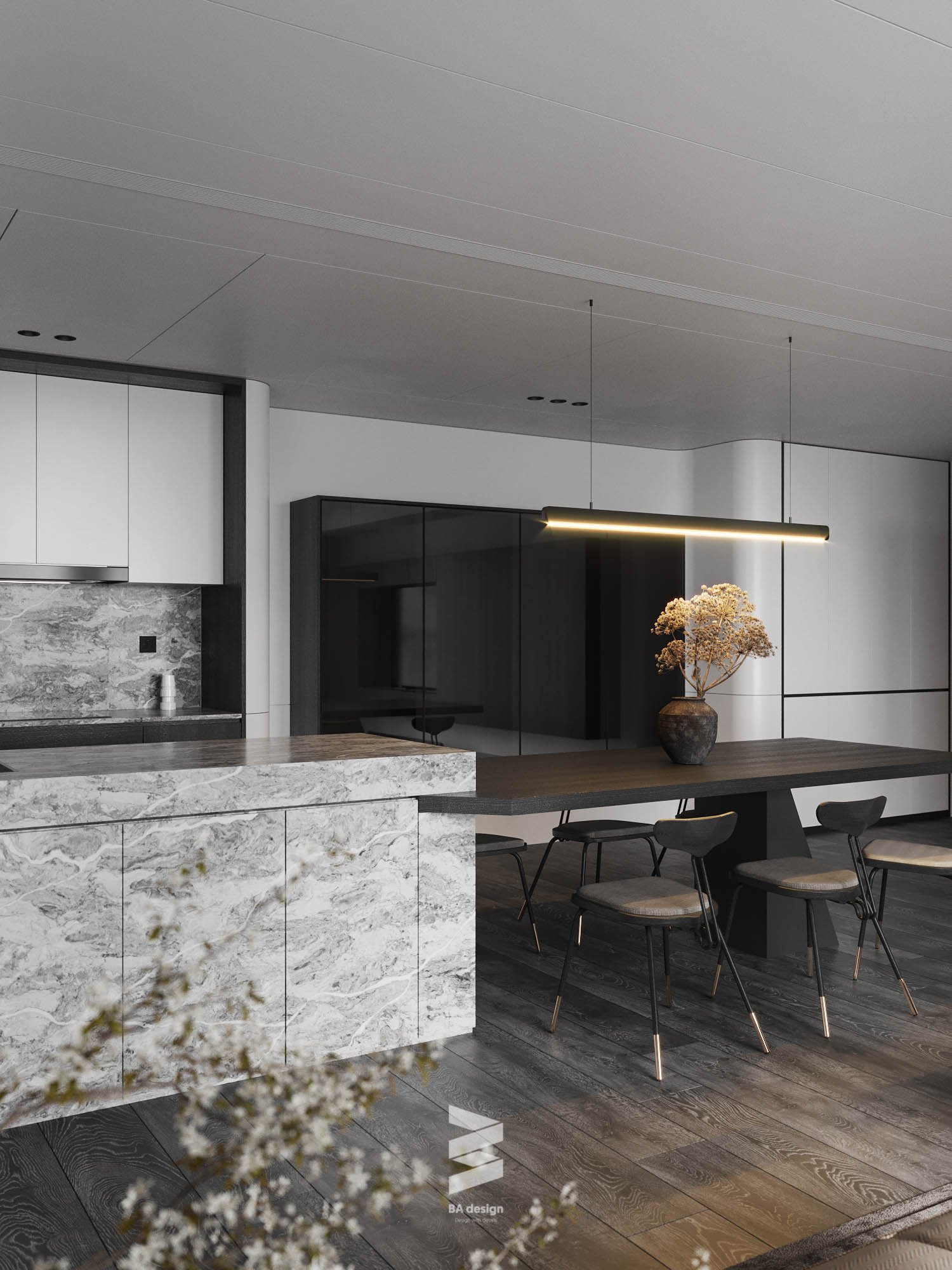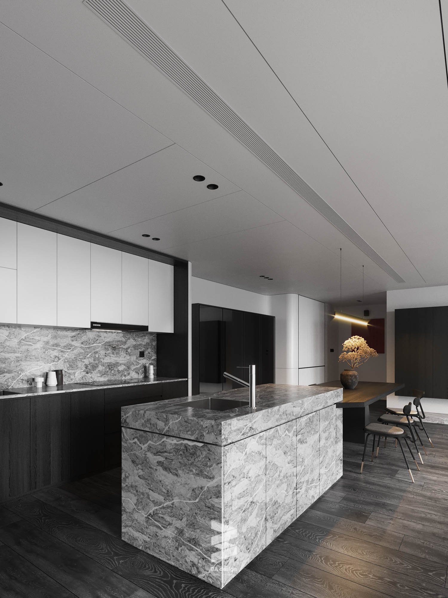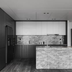 This 3D scene features a modern living room with a focus on contemporary interior design. The room is elegantly furnished with modern furniture and decor, creating a stylish and inviting space. Explore the details of this scene to get inspiration for your own interior design projects.