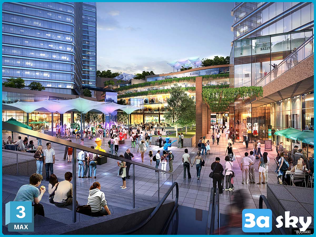 This 3D scene features a modern living room with a focus on contemporary interior design. The room is elegantly furnished with stylish furniture and decor, creating a perfect blend of aesthetics and functionality. Explore this scene to get inspiration for your own interior design projects.