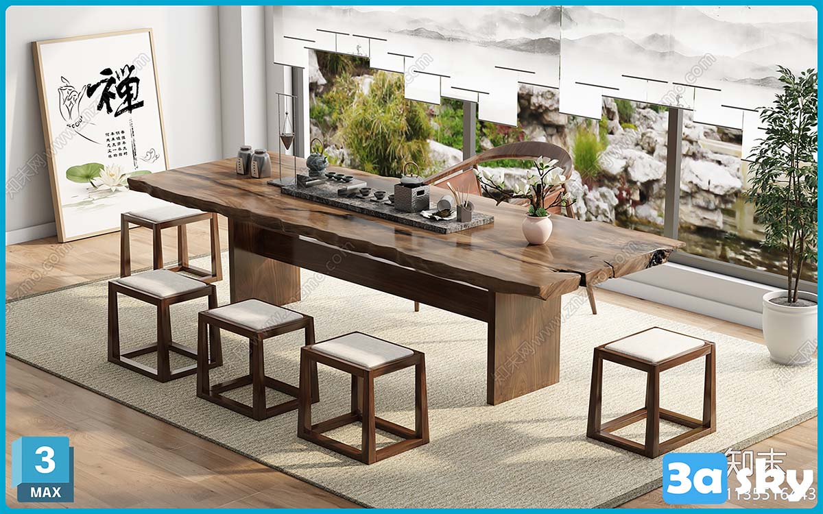 V_VR新中式实木茶桌椅组合_胡桃木泡茶桌_茶台_茶壶茶具_矮凳3D模型ID_1135516443.zip