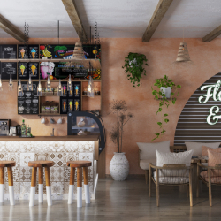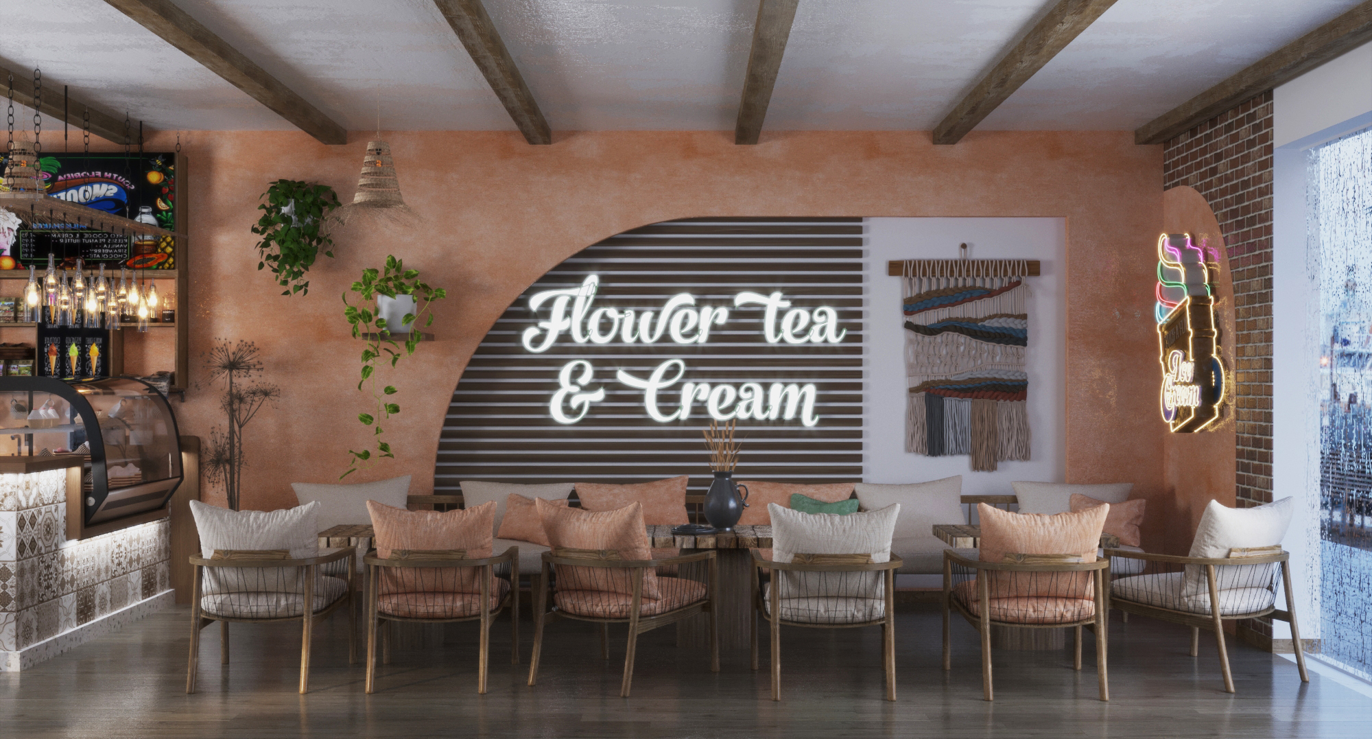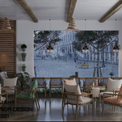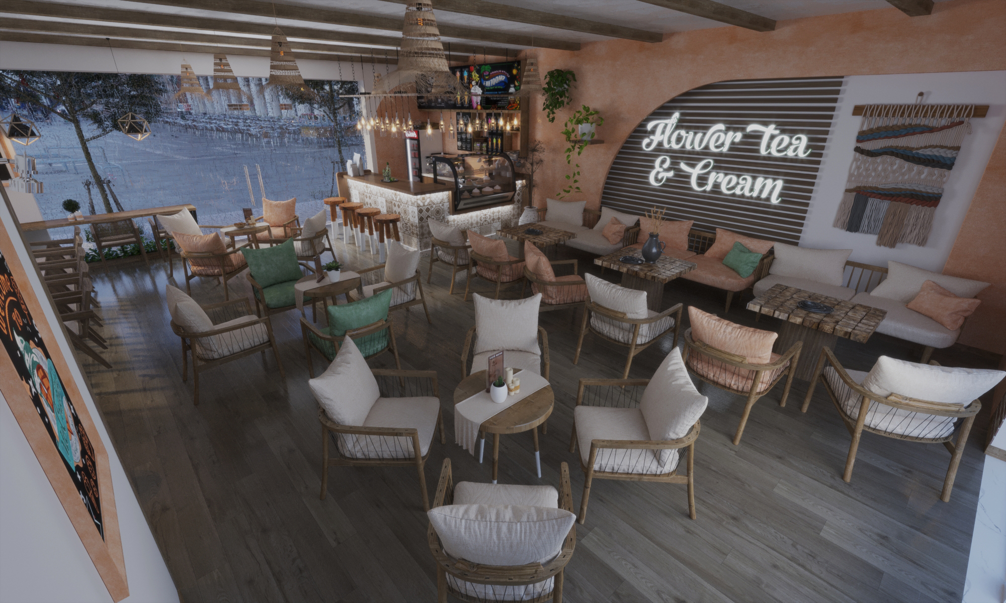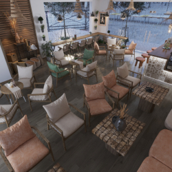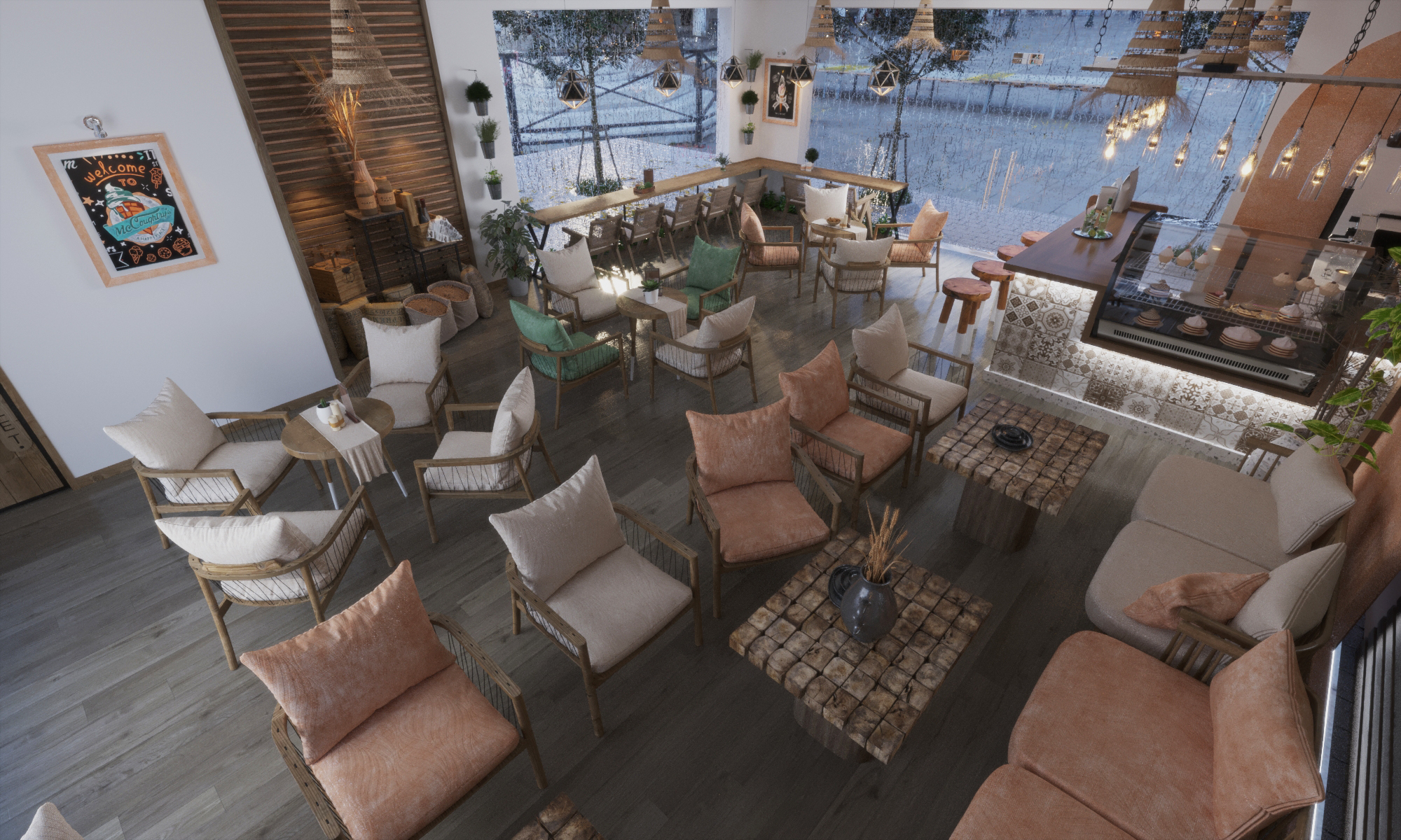 This 3D scene features a modern living room with contemporary furniture and decor. The design highlights a blend of style and functionality, creating a welcoming and stylish space for relaxation and entertainment.