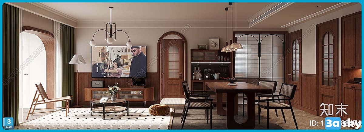 This 3D scene showcases a modern living room with contemporary furniture and decor. The design features a sleek and stylish interior, perfect for those looking for inspiration in modern home decor. Created using 3DS MAX software, this scene offers a glimpse into the world of 3D interior design.