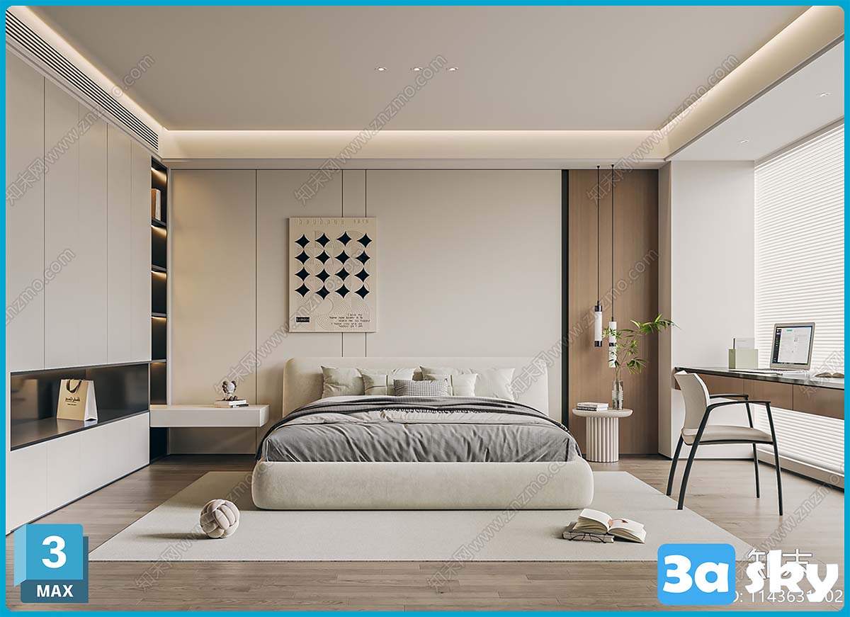 V_奶油风卧室主人房3d模型ID-14297402.rar