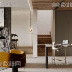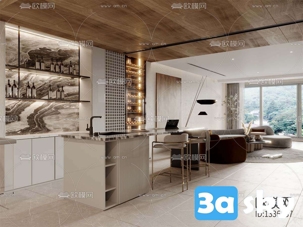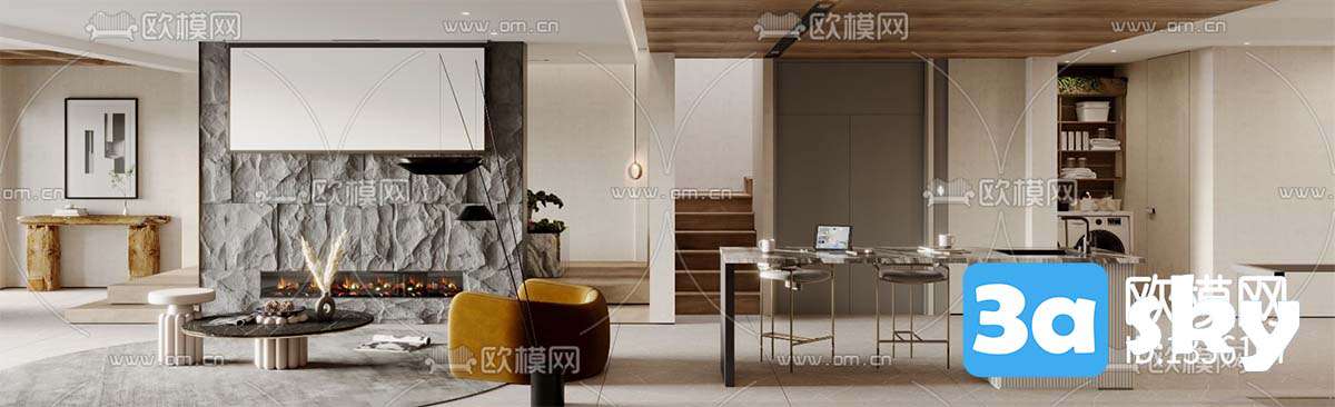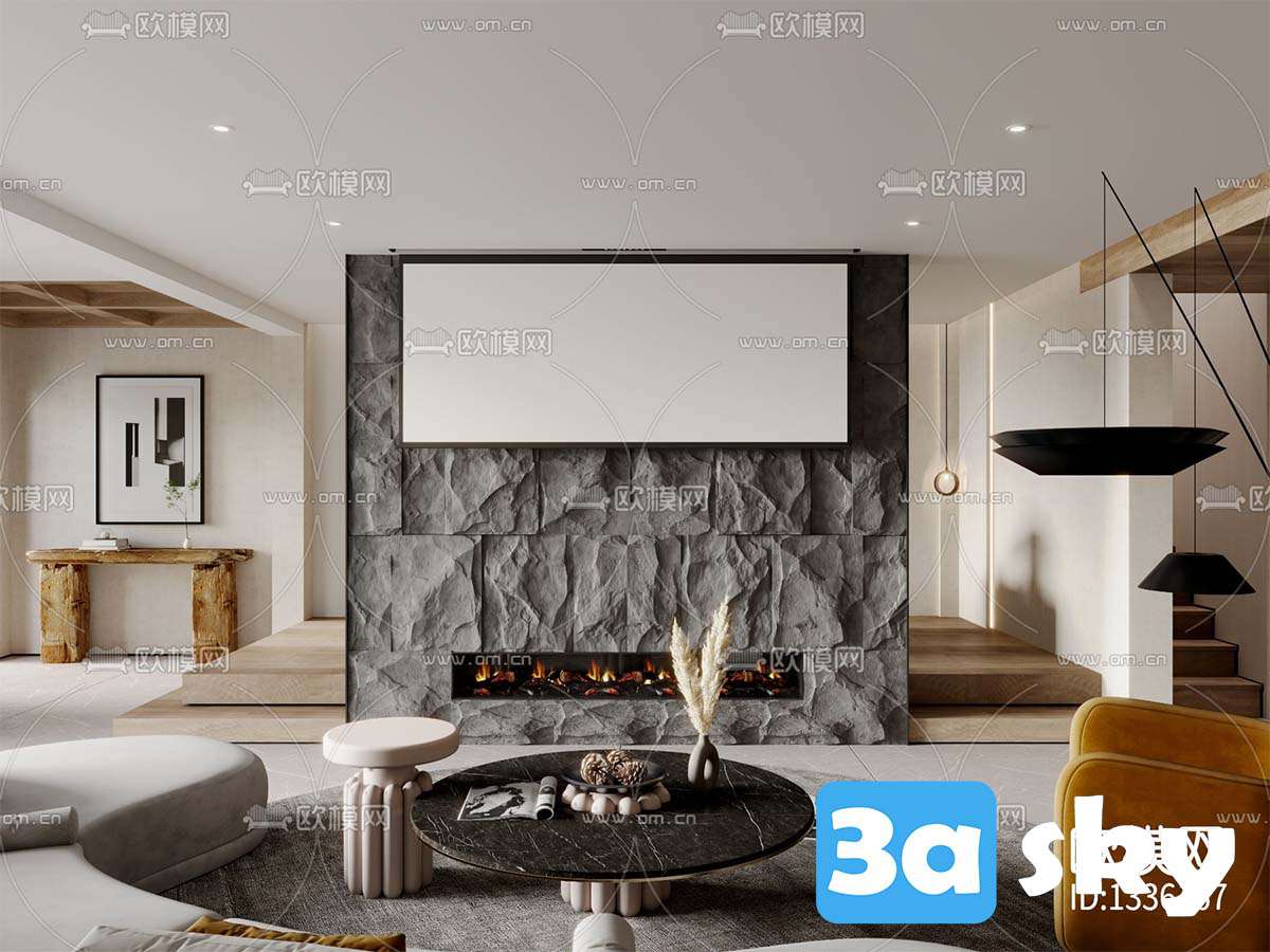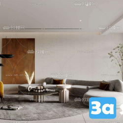 This 3D scene showcases a modern living room interior designed with contemporary elements. The space features sleek furniture, stylish decor, and a harmonious color palette. Created using 3DS MAX, this scene offers a glimpse into modern interior design trends.
