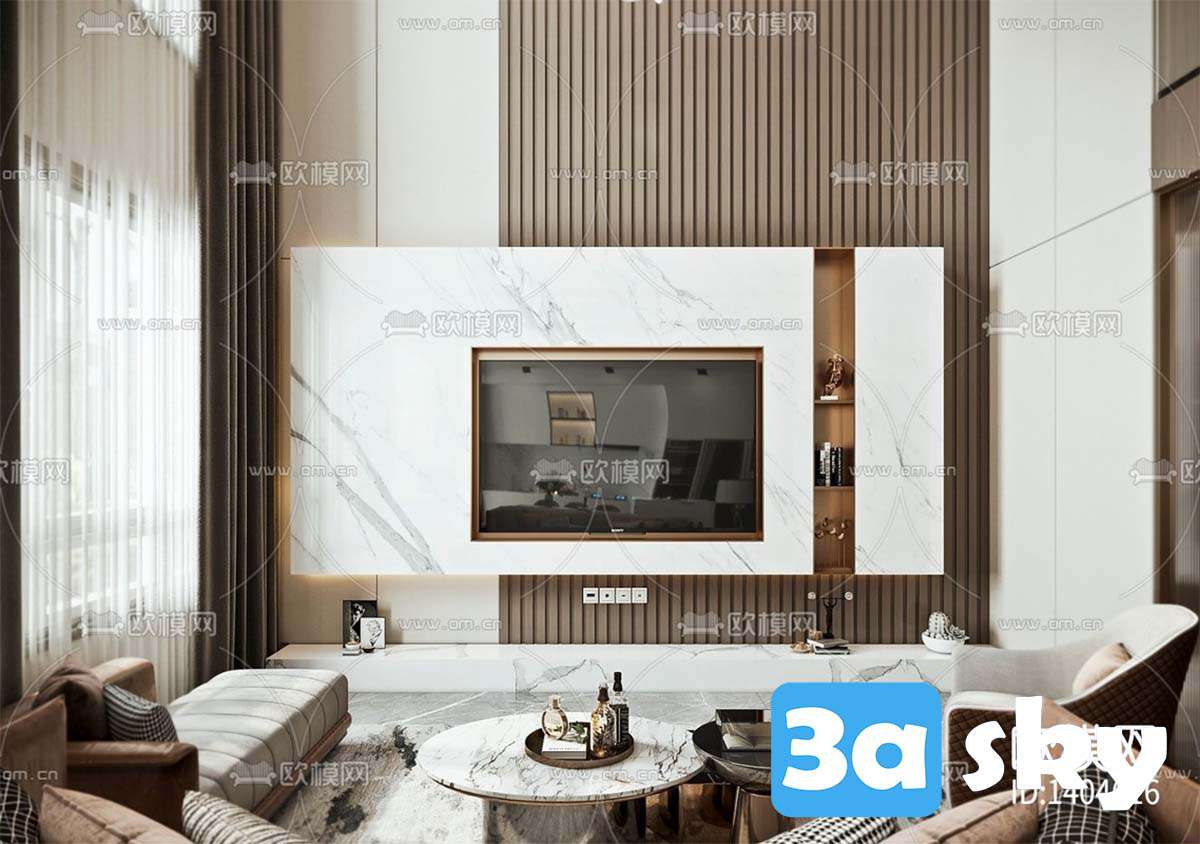 This 3D scene showcases a modern living room interior with a contemporary design aesthetic. The space features stylish furniture, elegant decor, and a well-thought-out layout. Created using 3DS MAX, this scene is perfect for those looking for inspiration in interior design and architecture.