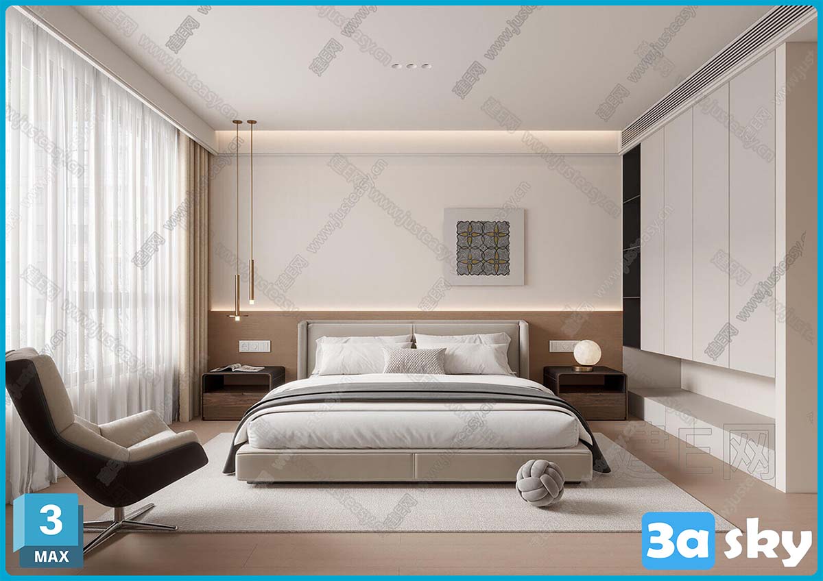 This 3D scene showcases a modern living room interior design, featuring contemporary furniture and decor elements. The scene is created in 3DS MAX, offering a realistic representation of a stylish and functional living space.