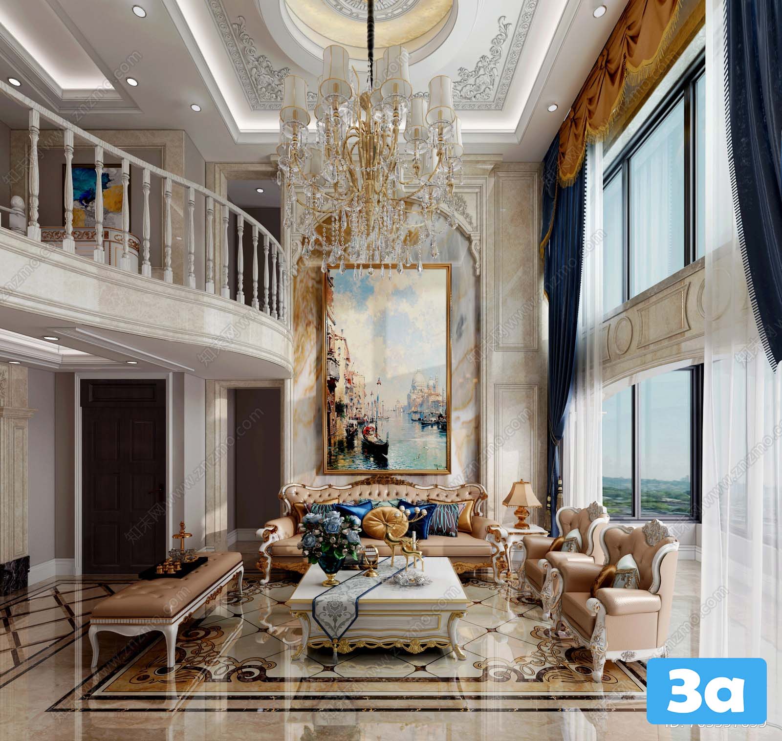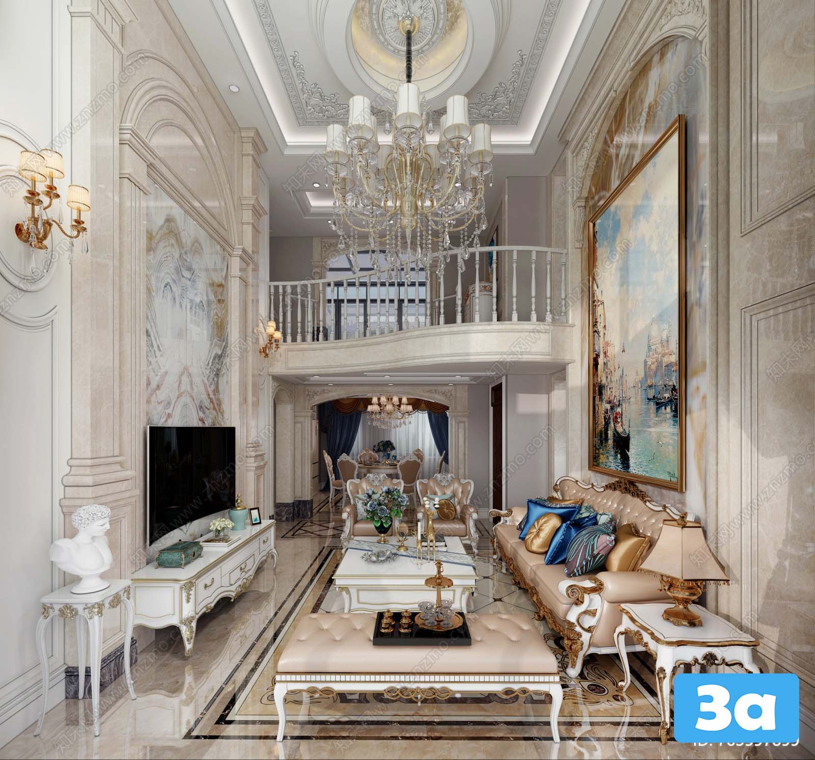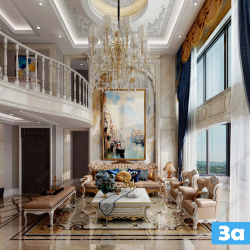 This 3D scene showcases a modern living room interior with carefully selected furniture and decor items. The design features a contemporary style with a focus on comfort and aesthetics. Explore the layout, color scheme, and overall ambiance of this beautifully crafted 3D model.