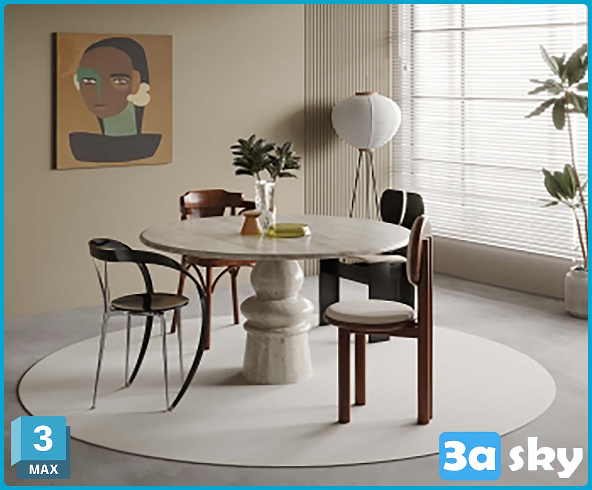 V_现代中古餐桌椅组合餐椅圆形餐桌落地灯挂画装饰画圆形地毯ID1135142503.zip