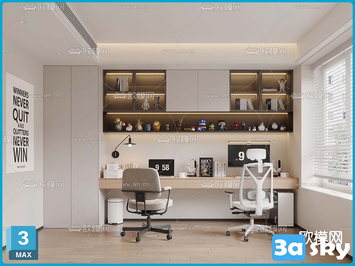 V_奶油风书房双人学习房3d模型ID-14180957.7z
