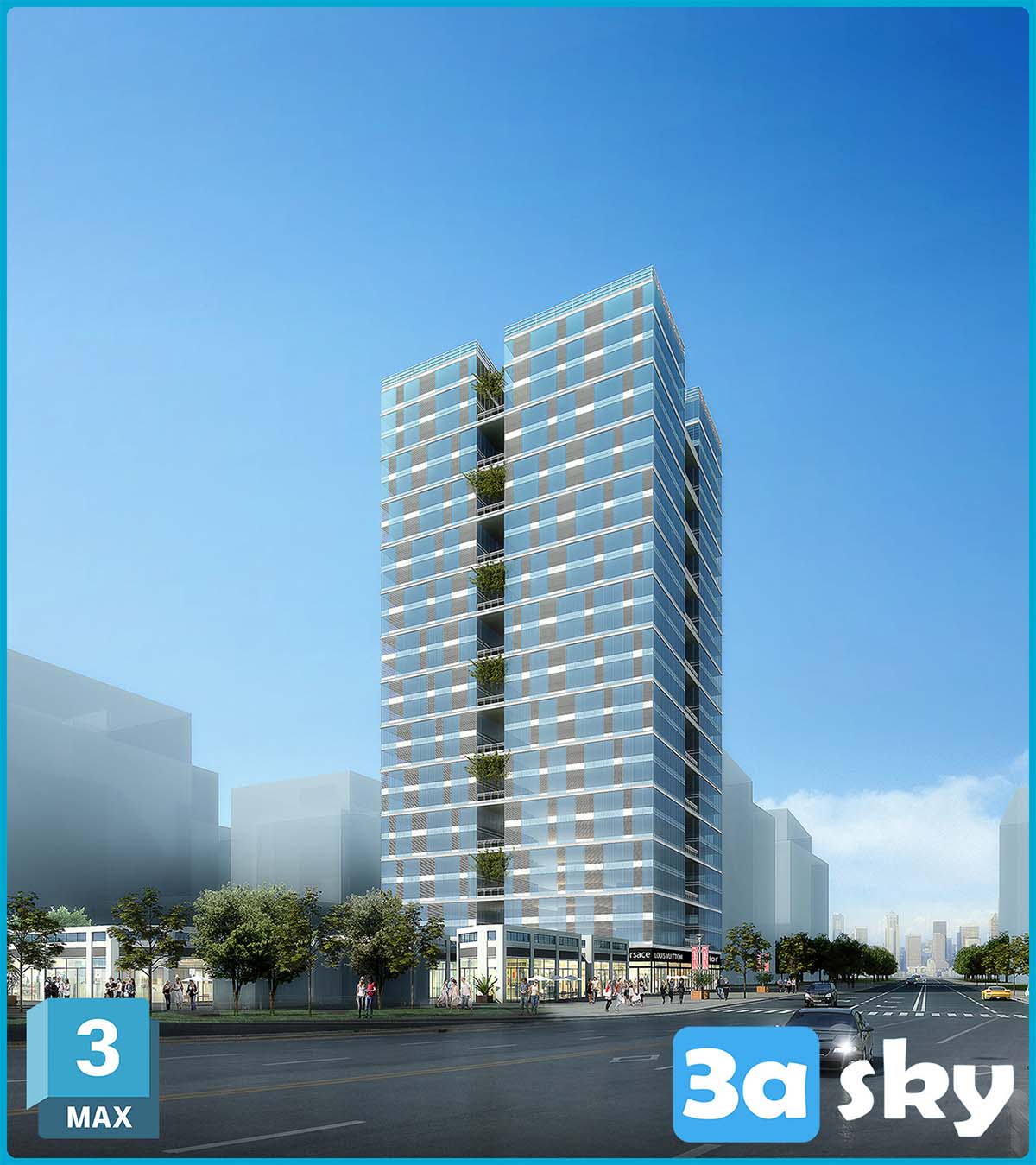 This 3D scene showcases a modern living room interior design created using 3DS MAX software. The room features contemporary decor elements and furniture, providing a glimpse into modern interior design trends.