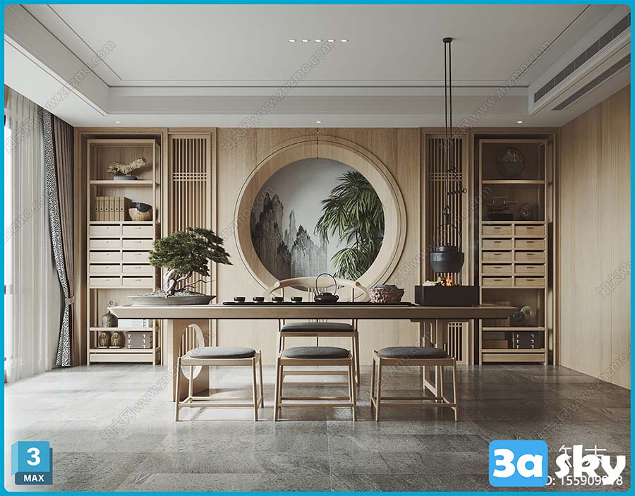 V_新中式茶室3D模型下载【ID155909918】.zip