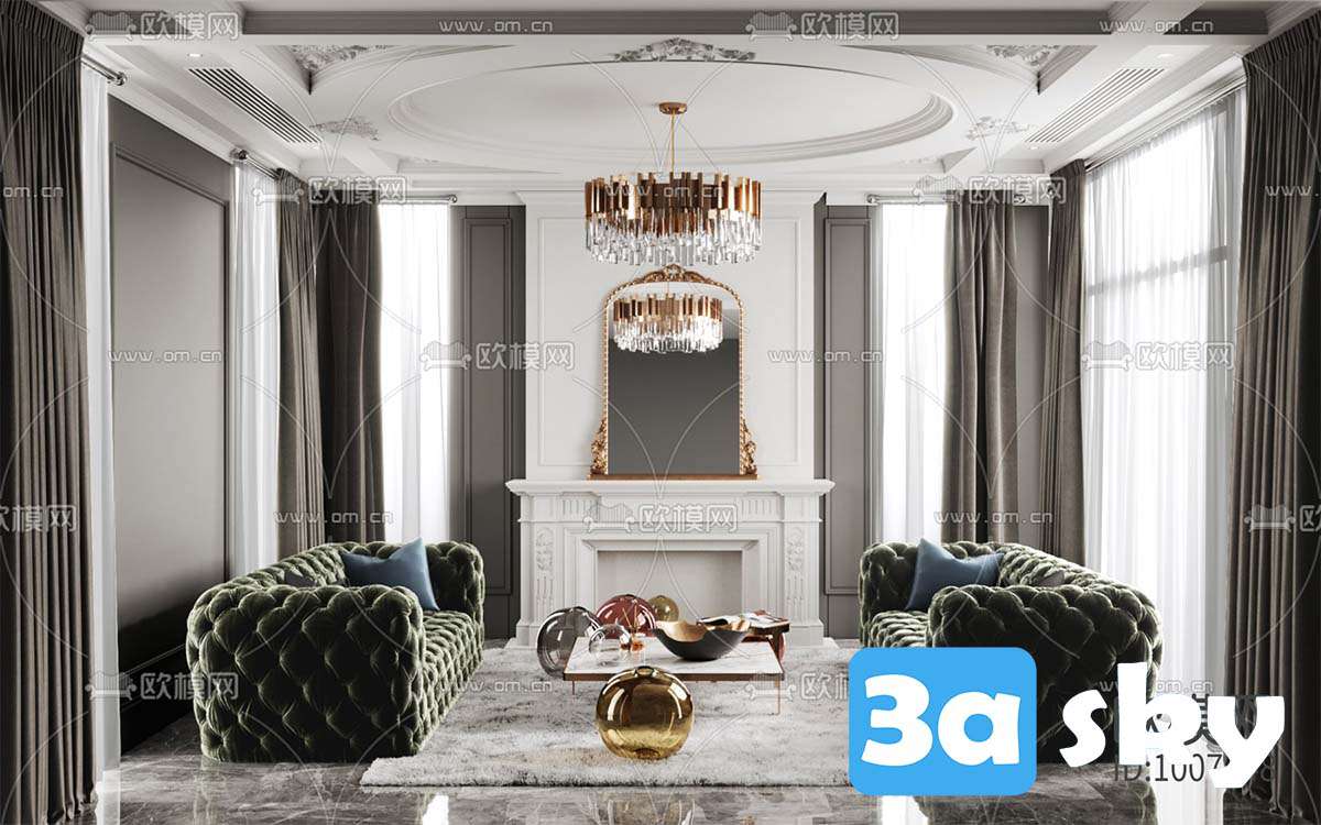 This 3D scene showcases a modern living room interior designed with contemporary elements. The space features sleek furniture, stylish decor, and a harmonious color palette. Experience the essence of modern living through this meticulously crafted 3D model.