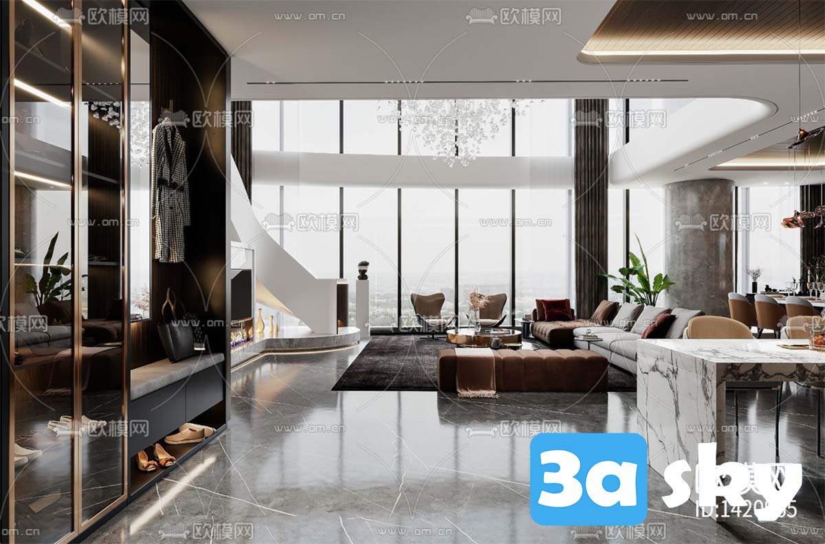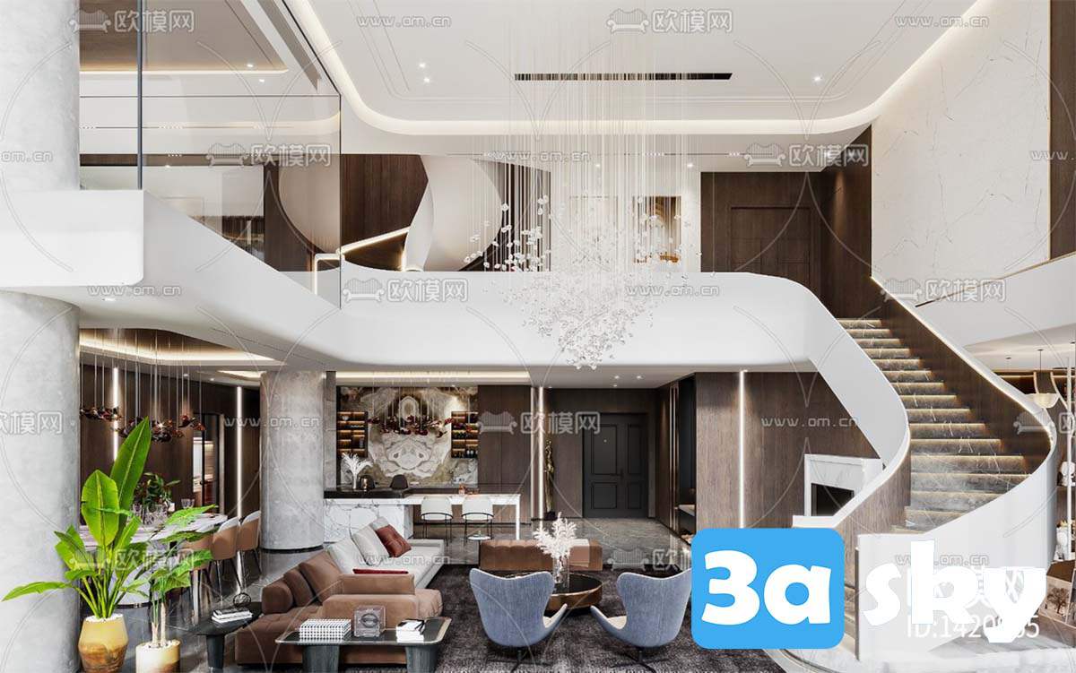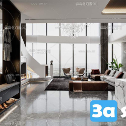 This 3D scene showcases a modern living room interior design created using 3DS MAX software. The scene features contemporary furniture, lighting, and decor elements, providing a glimpse into modern architecture and design trends. Explore the intricate details and layout of this virtual living space, perfect for interior design enthusiasts and 3D modeling professionals.