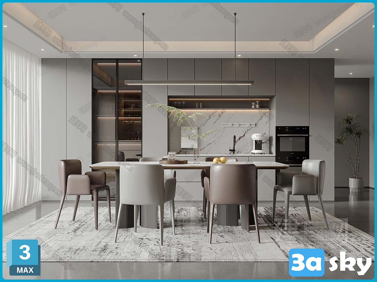 This 3D scene showcases a modern living room interior design created using 3DS MAX software. The scene features contemporary furniture and a stylish layout, providing a glimpse into modern interior design trends.