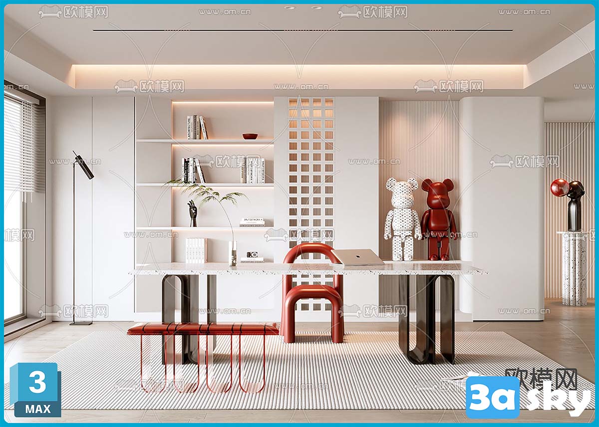 This 3D scene showcases a modern living room interior designed with a contemporary style. The space features stylish furniture, elegant decor, and a well-thought-out layout. Explore the details and design elements in this visually appealing 3D scene.