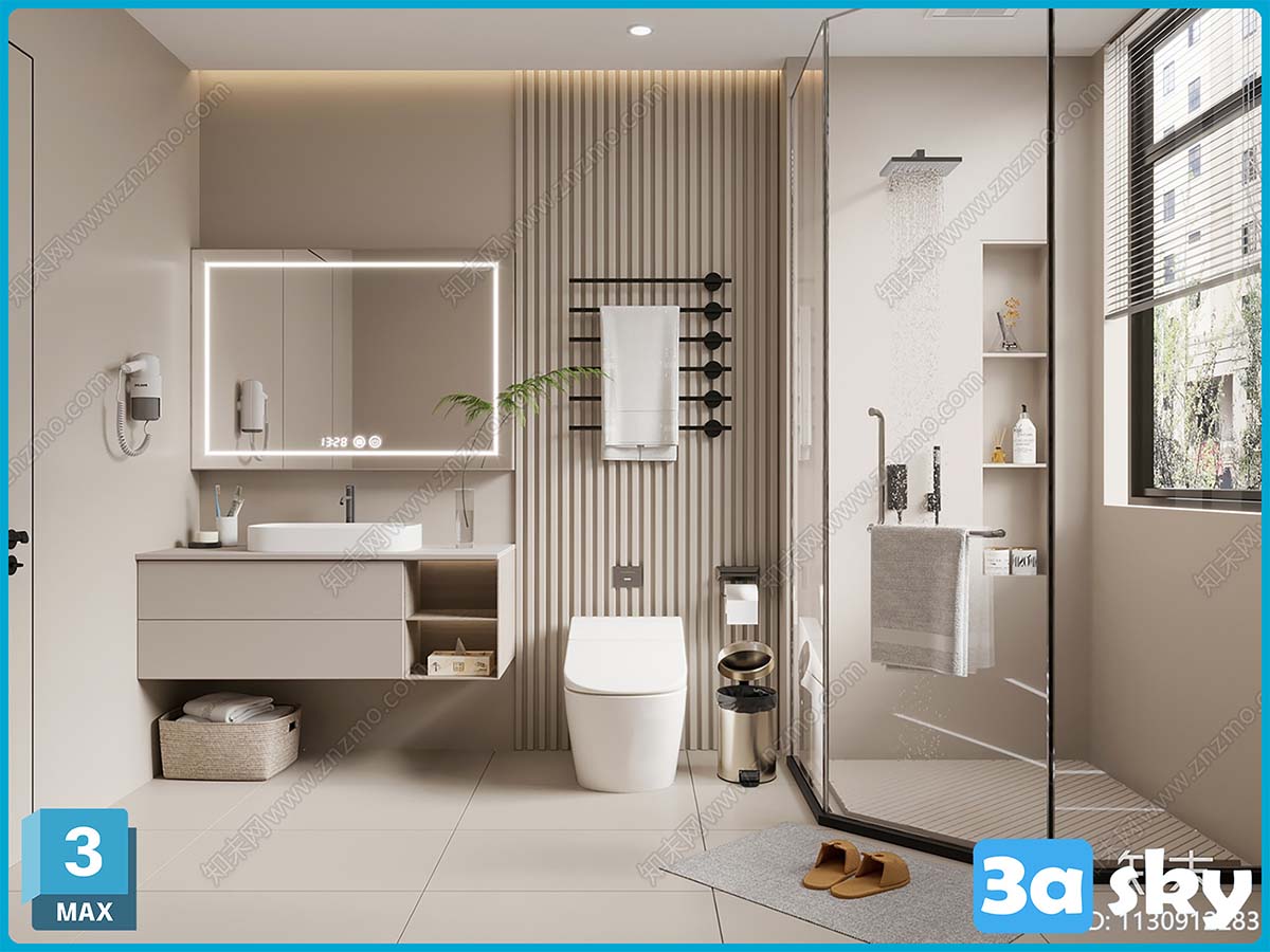 V_奶油风卫生间浴室3d模型ID-14003771.zip