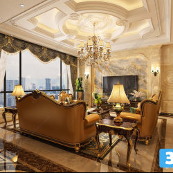 This 3D scene showcases a modern living room interior with contemporary furniture and decor. The design features a sleek and stylish layout, highlighting the latest trends in interior design. Explore the details of this 3D scene created in 3DS MAX, offering a glimpse into modern living spaces.