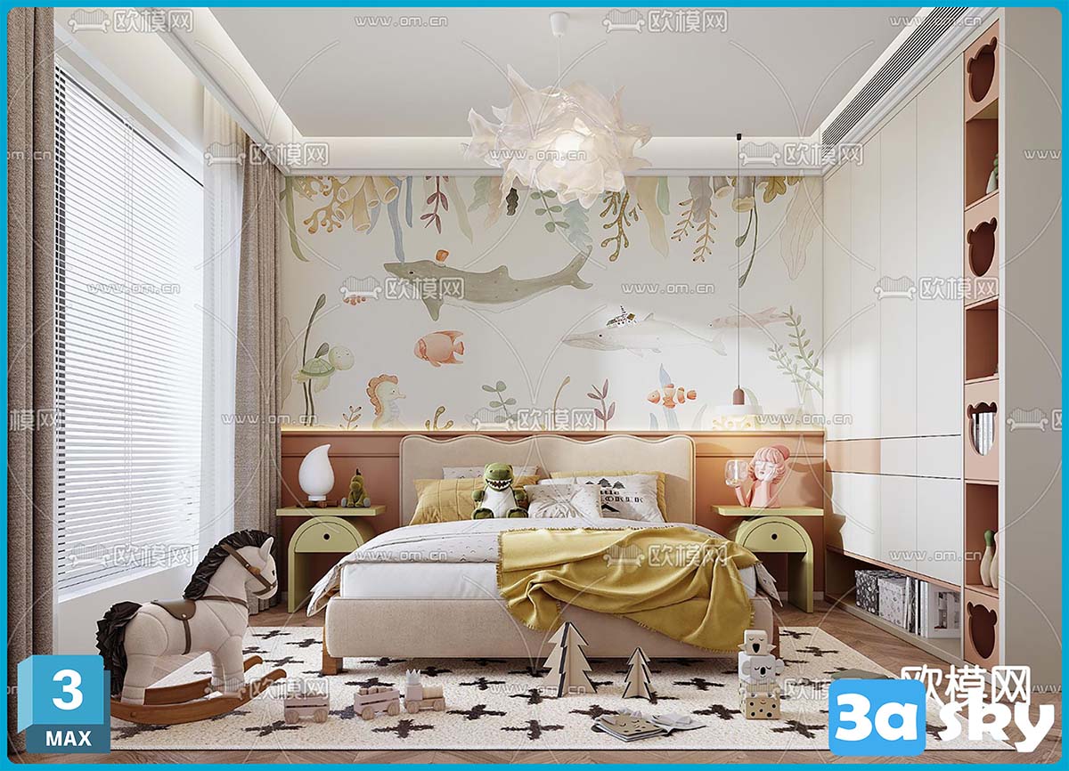 V_VR北欧儿童房女孩房小孩房卧室3d模型ID-15042938.rar