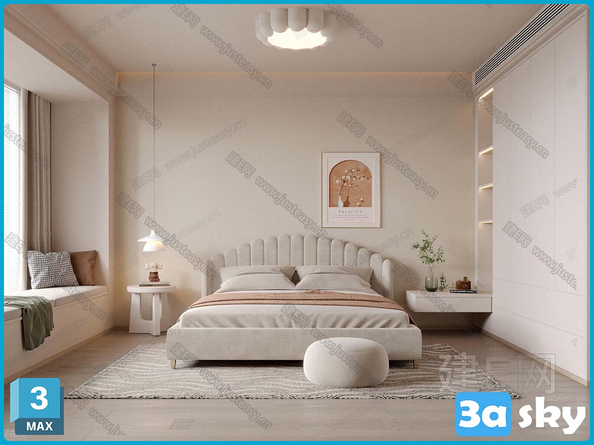 This 3D scene showcases a modern living room interior design with contemporary furniture and decor. The room features a stylish sofa, coffee table, and decorative elements. Perfect for inspiration and visualization projects.