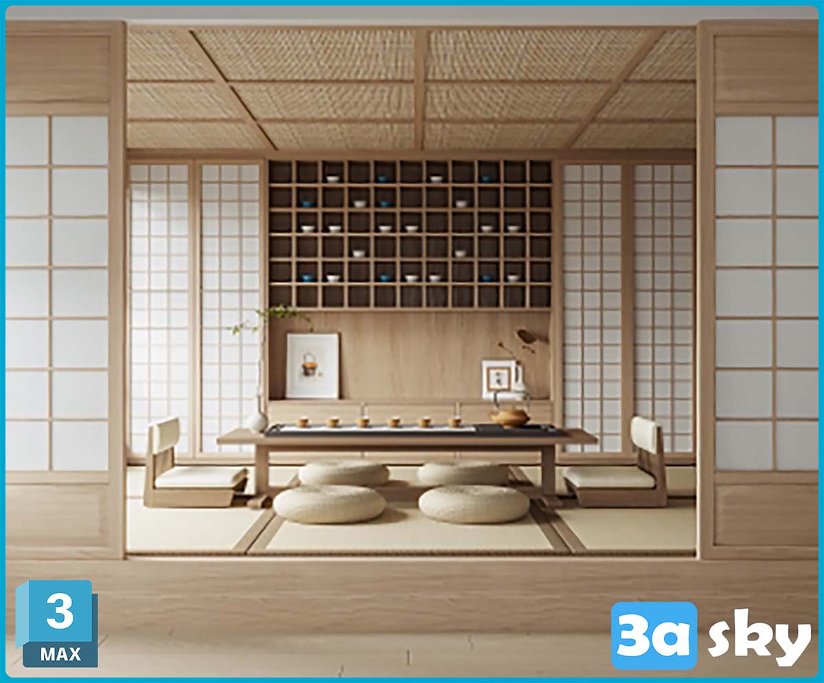 This 3D scene showcases a modern living room interior design with stylish furniture and decor. The room features a contemporary aesthetic with a focus on comfort and functionality. Explore the design details and layout in this preview image.