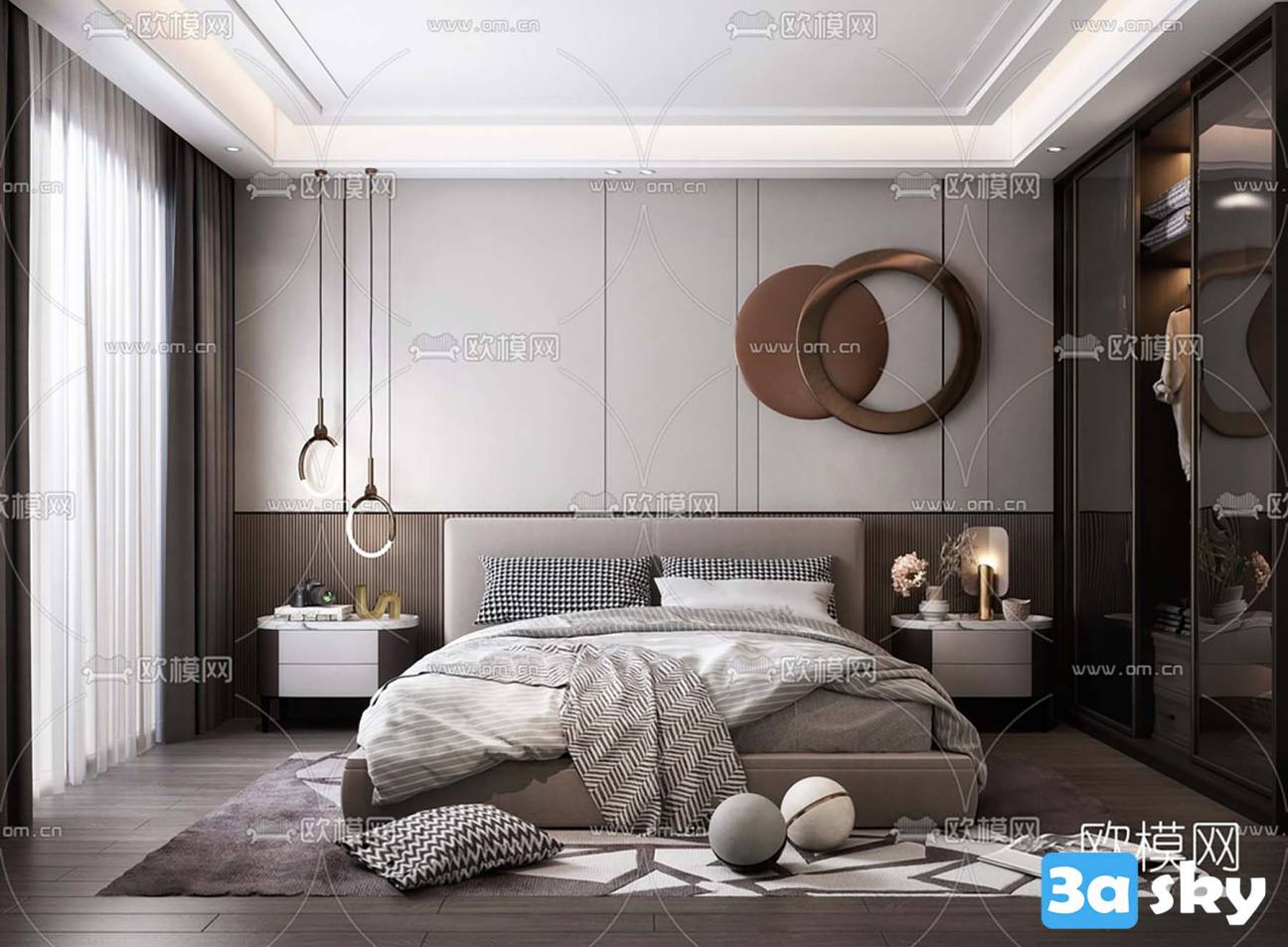 This 3D scene features a modern living room interior design with contemporary furniture and decor elements. The space is elegantly designed with a focus on comfort and style. Explore the details of this beautifully crafted room and get inspired for your own interior design projects.