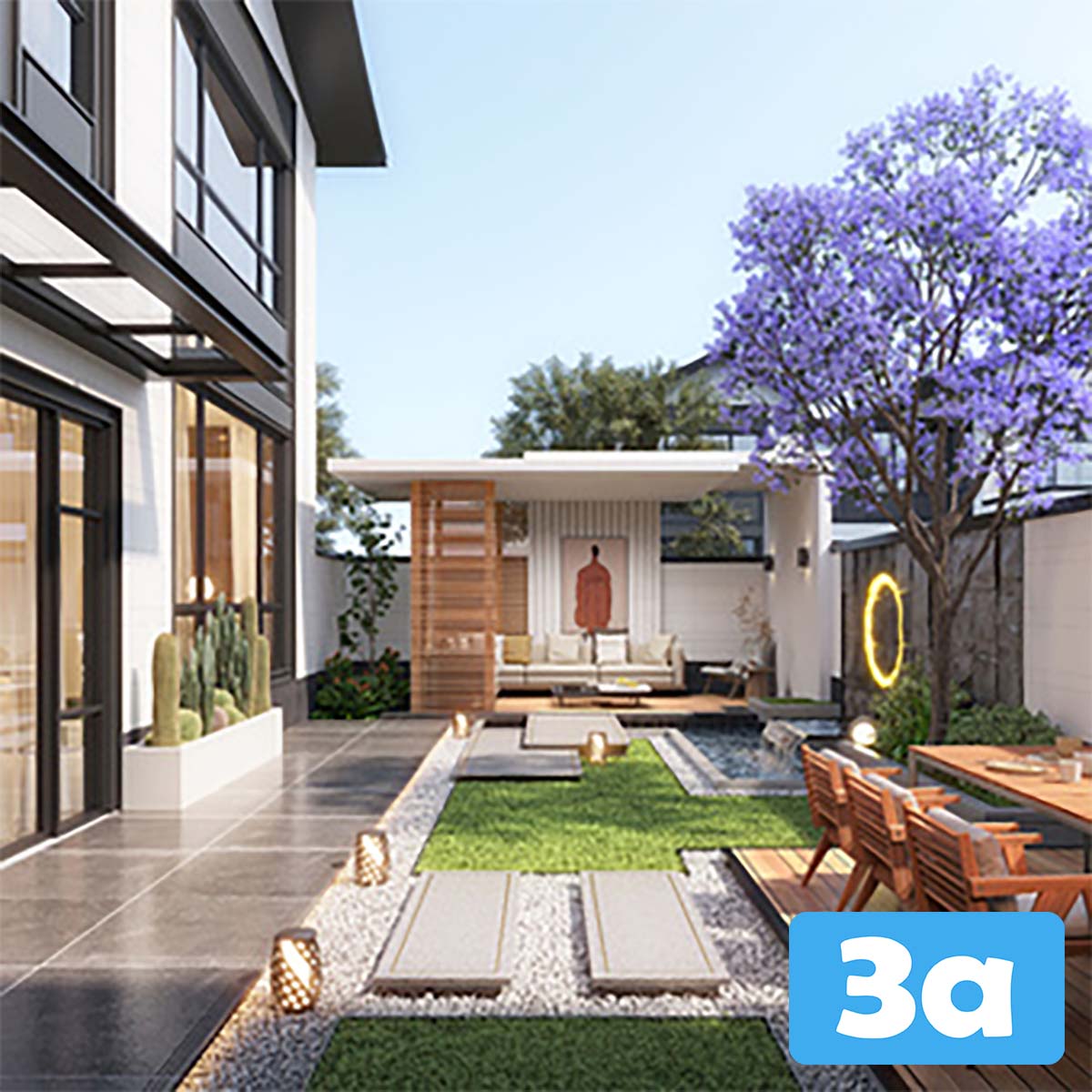 This 3D scene showcases a modern living room interior design with contemporary furniture and a stylish layout. Explore the details and get inspired for your own interior design projects.