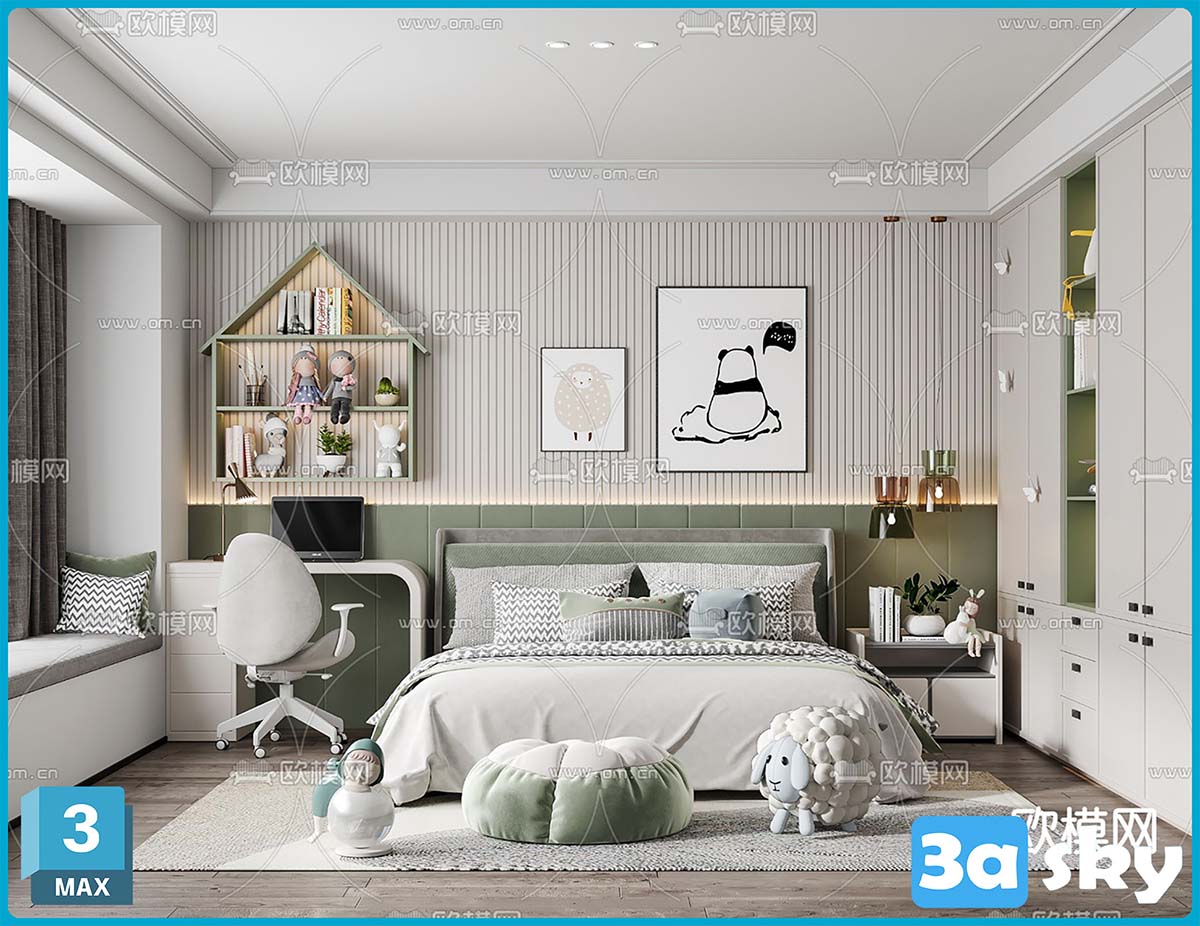 V_现代卧室男孩房3d模型ID_2008727.rar