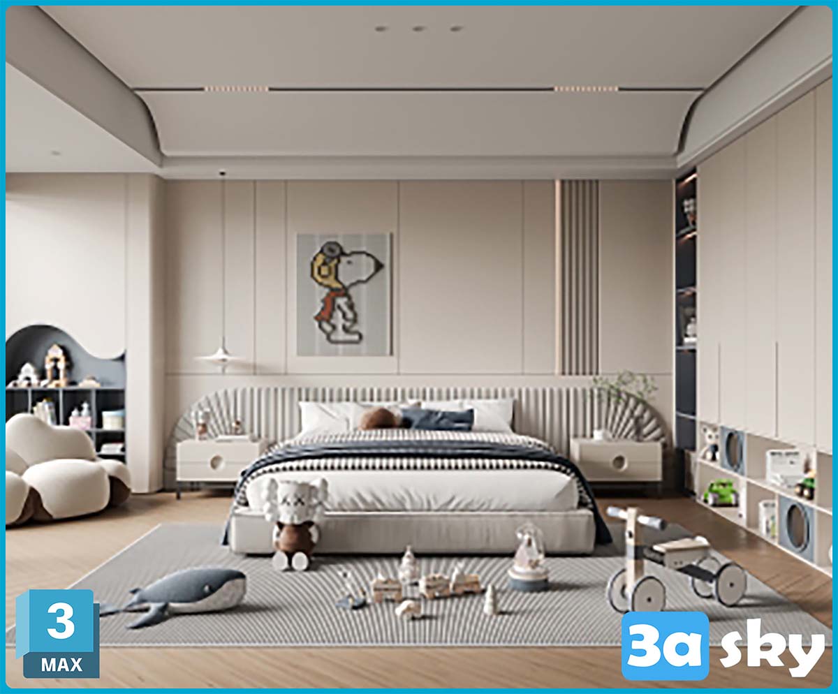 F_现代男孩儿童房儿童书桌椅床头柜吊灯布偶玩具饰品摆件ID1136961601.zip