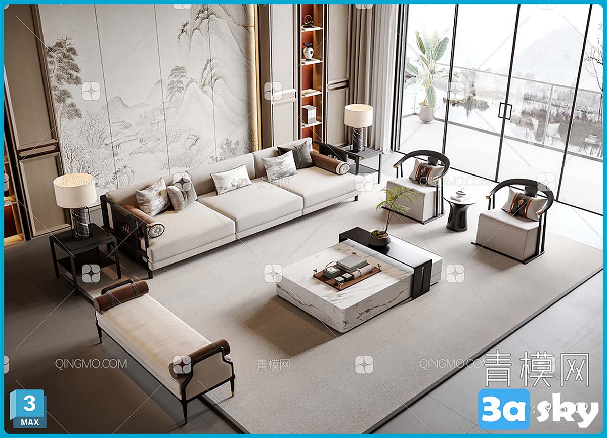 F_沙发茶几组合3D模型下载ID_1963409.rar