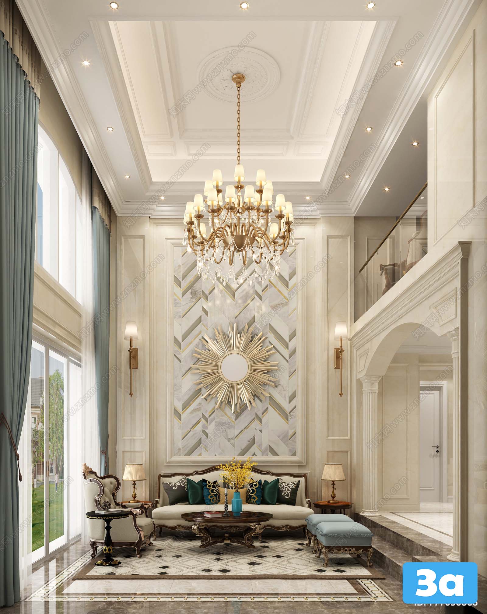 This 3D scene showcases a modern living room interior design with a focus on contemporary style and functionality. The room features carefully selected furniture and decor elements that create a harmonious and inviting space. Explore the perfect blend of modern aesthetics and practical design in this captivating 3D visualization.