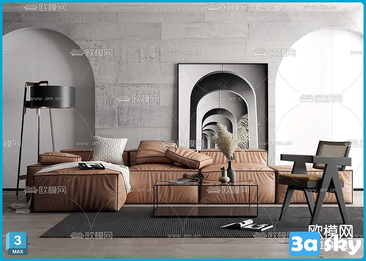 This 3D scene showcases a modern living room interior design with contemporary furniture and a stylish layout. The room features a sleek sofa, elegant coffee table, and chic decor elements. The color scheme is neutral with pops of color for a vibrant touch. Experience the beauty of modern interior design in this captivating 3D scene.