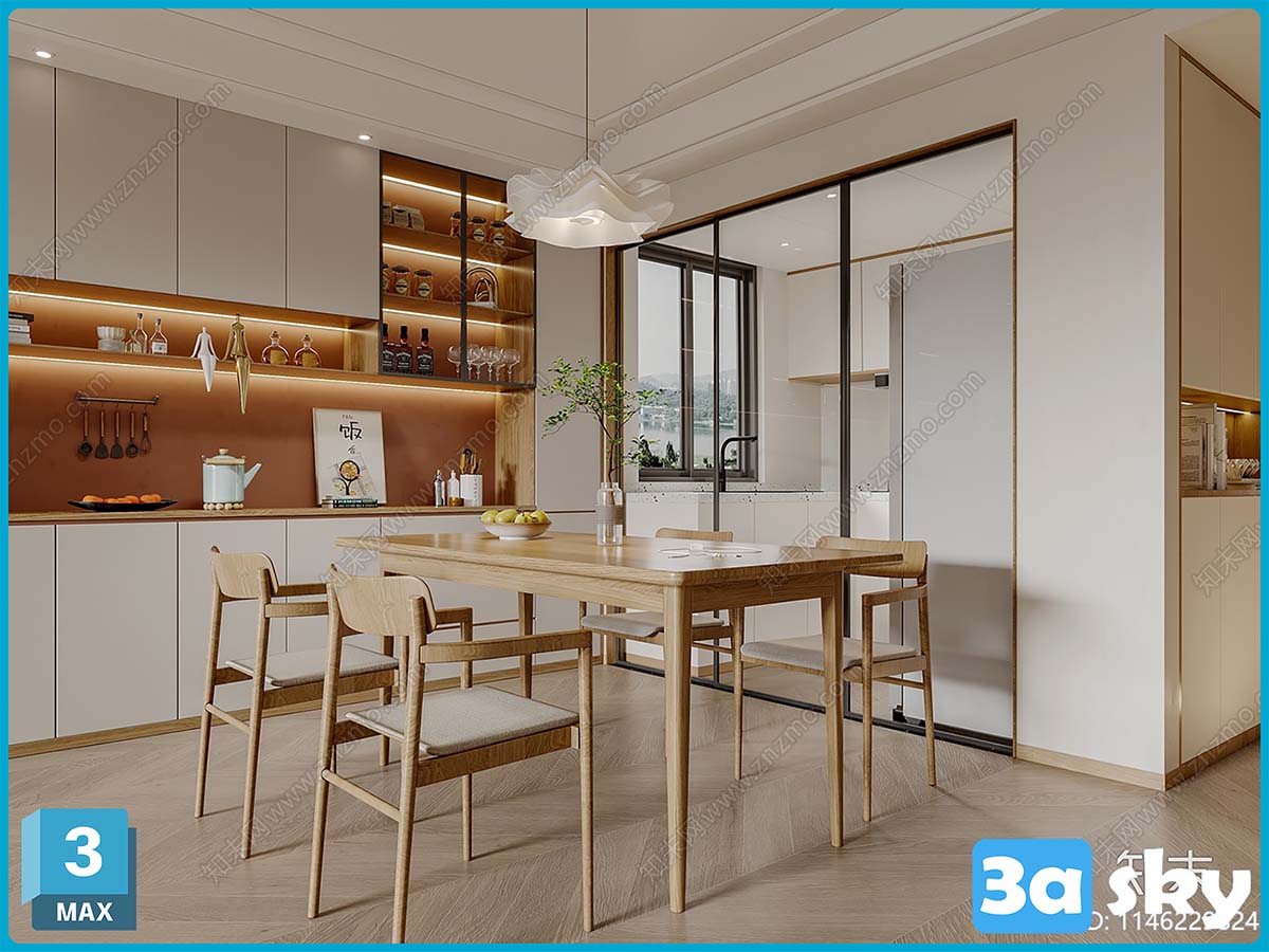 This 3D scene showcases a modern living room interior design with stylish furniture and decor. The room features a contemporary aesthetic with a focus on comfort and functionality. Explore the design elements and layout in this preview image.