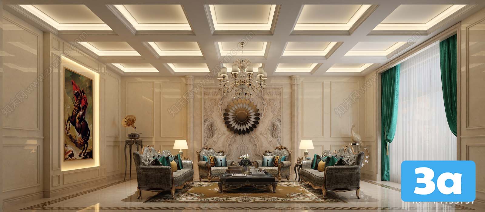 This 3D scene showcases a modern living room interior design with carefully selected furniture and decor. The contemporary layout and design elements create a stylish and inviting space. Explore the details of this 3D scene to gather inspiration for your own interior design projects.