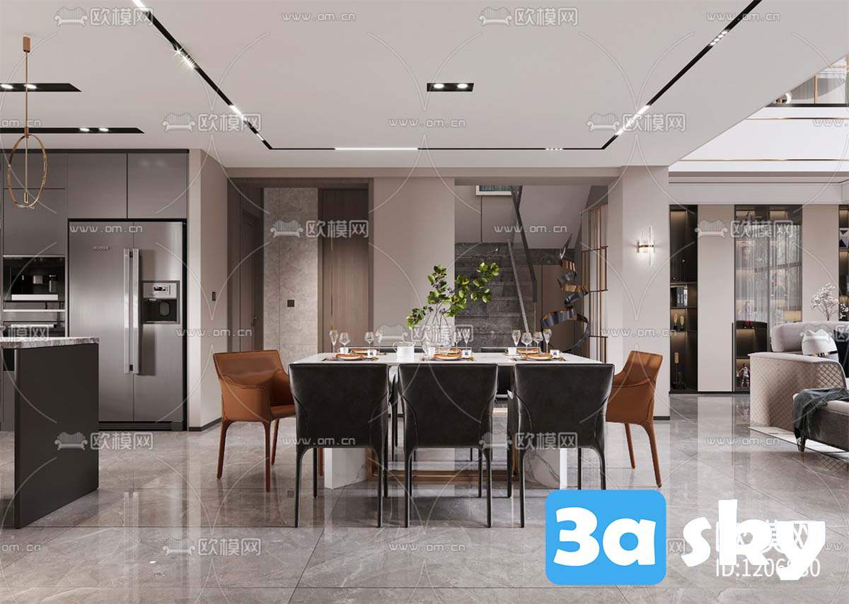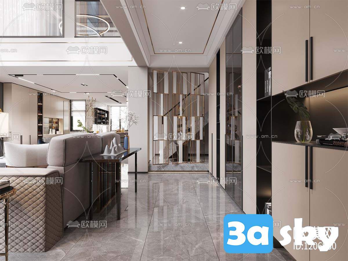 This 3D scene showcases a modern living room interior design with stylish furniture and contemporary decor. The scene features a cozy seating area, elegant lighting, and a harmonious color scheme. Explore the details of this well-designed space for inspiration and ideas for your own interior design projects.