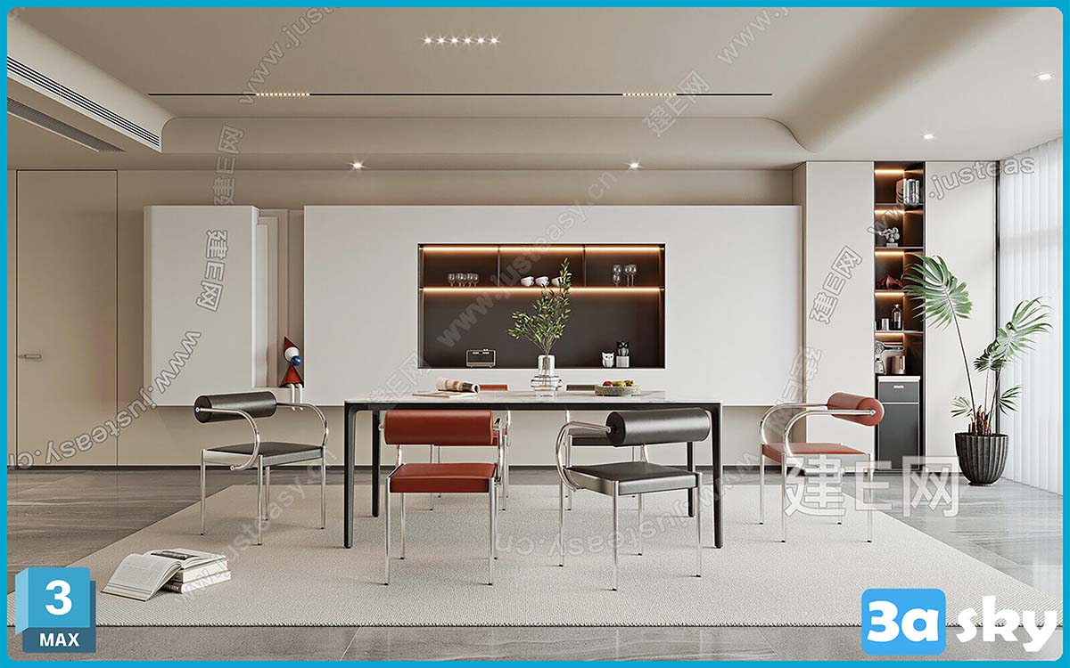 This 3D scene showcases a modern living room interior design with carefully selected furniture and decor. The contemporary layout and stylish elements create a welcoming and aesthetically pleasing space. Explore the intricate details of this design to gather inspiration for your own interior decor projects.