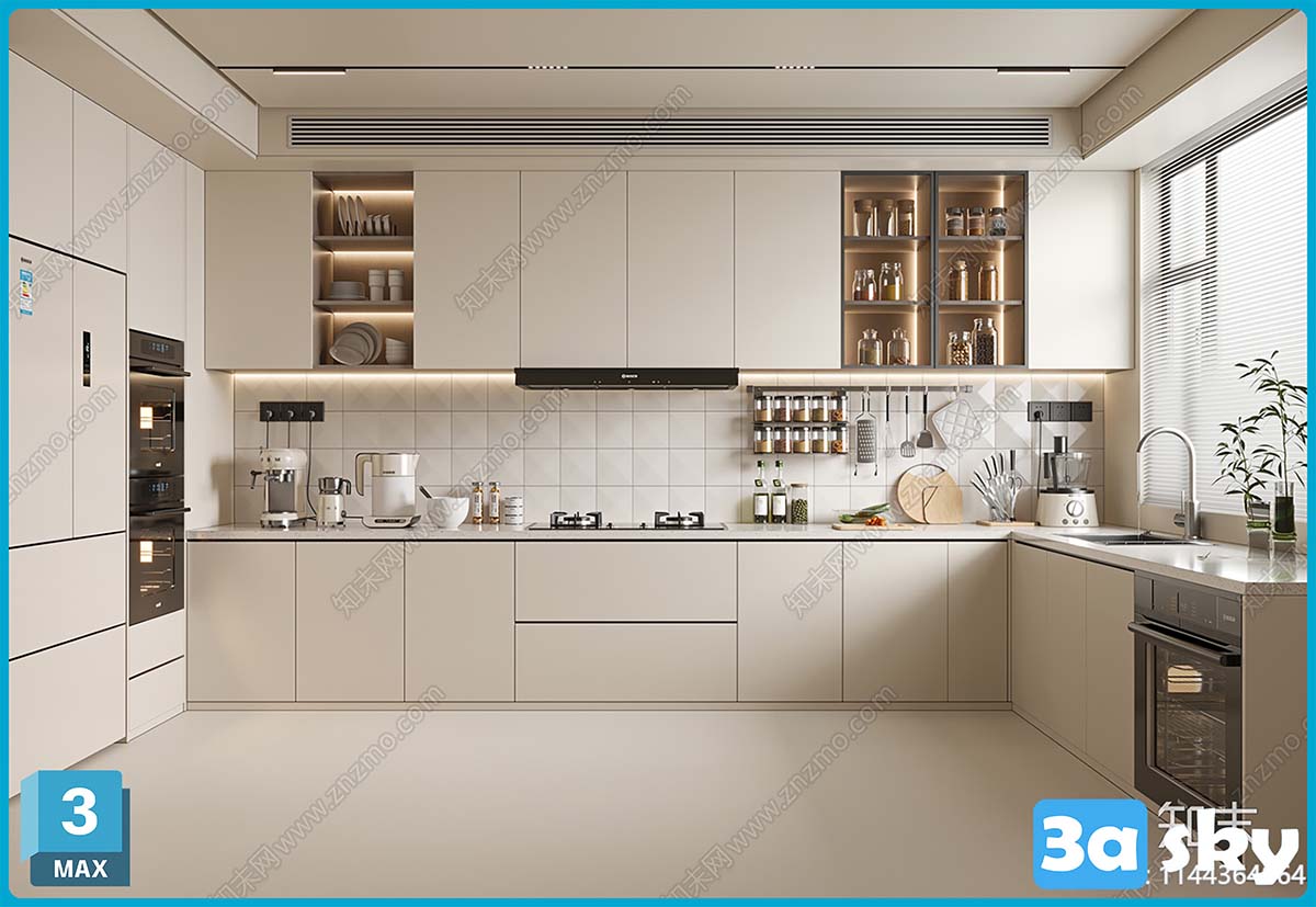 V_CR现代封闭式厨房_定制橱柜_油烟机_洗碗机_蒸箱_烤箱_厨房用品_厨房电器3D模型ID_1144364064.rar