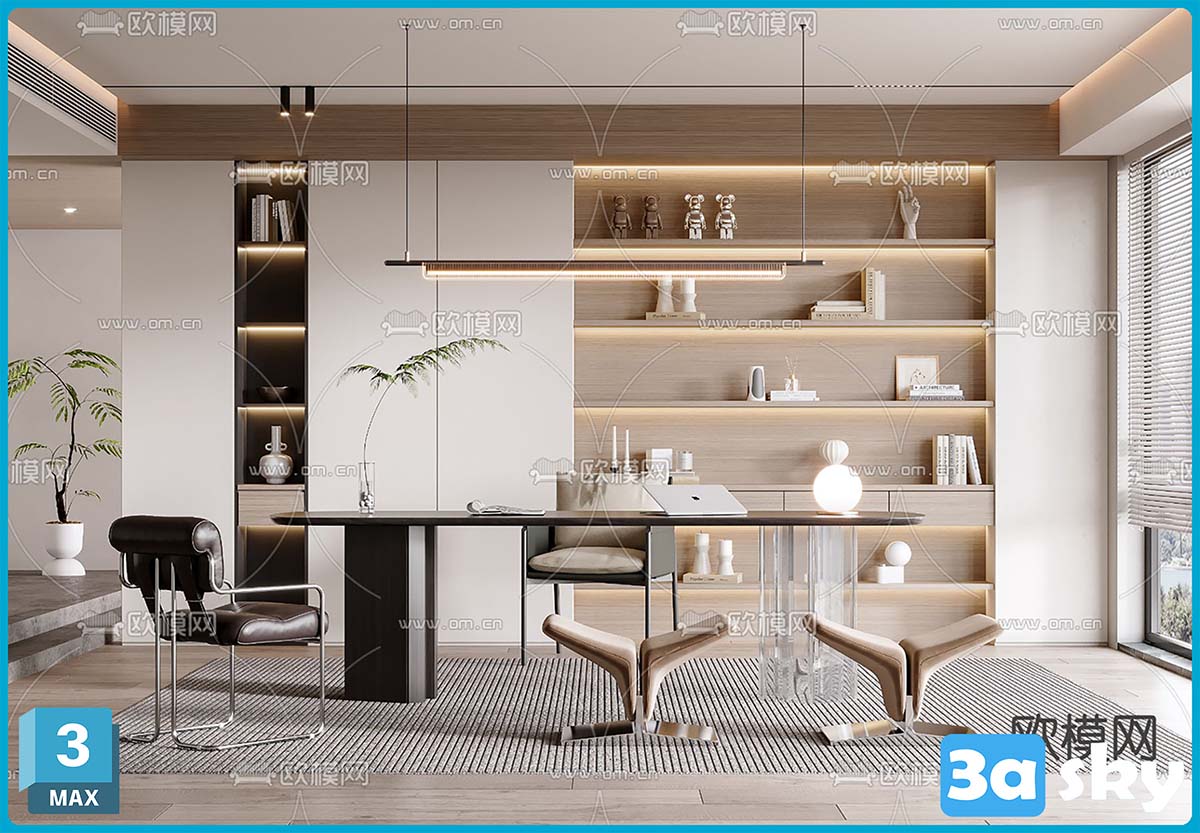 This 3D scene showcases a modern living room interior design with stylish furniture and contemporary decor. The scene features a cozy seating area, elegant lighting, and a sleek color palette. Perfect for those looking for inspiration for their own interior design projects.