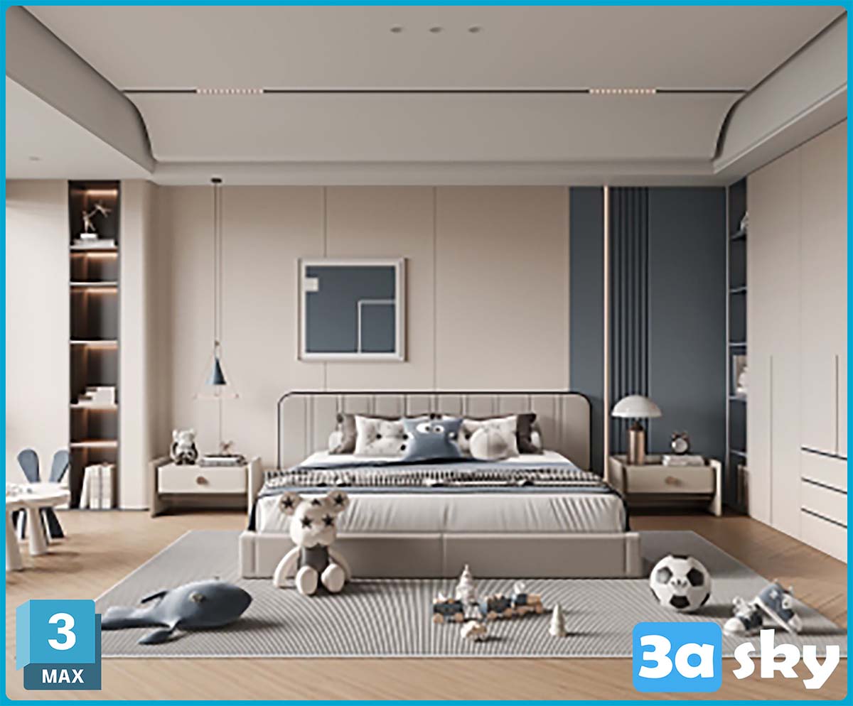 V_现代男孩儿童房儿童书桌椅床头柜吊灯布偶玩具饰品摆件ID1136778512.zip