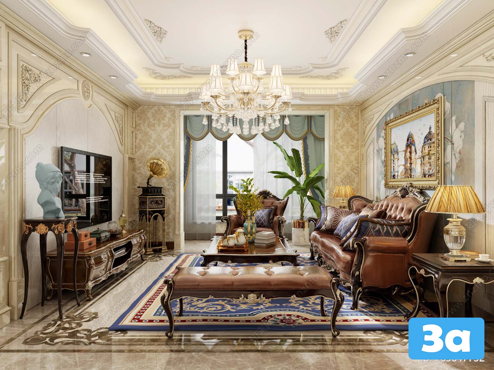 This 3D scene showcases a modern living room interior design with a focus on contemporary style and functionality. The room features carefully selected furniture and decor elements that create a harmonious and inviting space. Explore the details of this design to gather inspiration for your own interior projects.