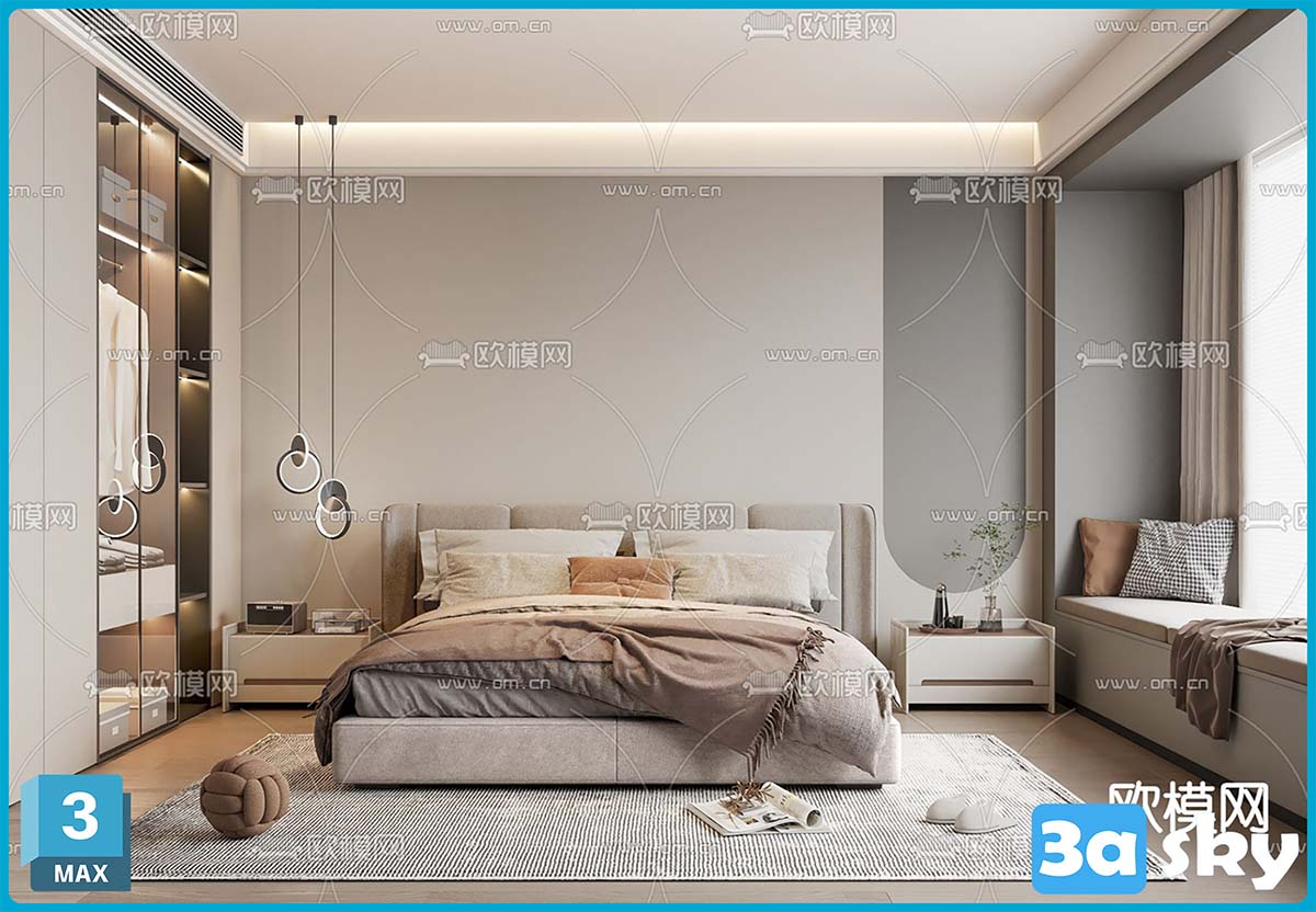 F_13042683奶油风卧室次卧客房模型.rar