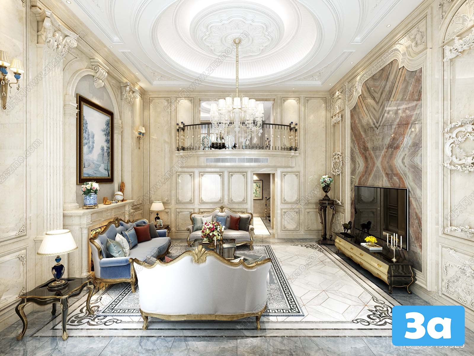 This 3D scene showcases a modern living room interior design with a focus on contemporary style and functionality. The scene features carefully selected furniture and decor elements that create a harmonious and inviting space. Explore the perfect blend of modern aesthetics and practical design in this captivating 3D visualization.