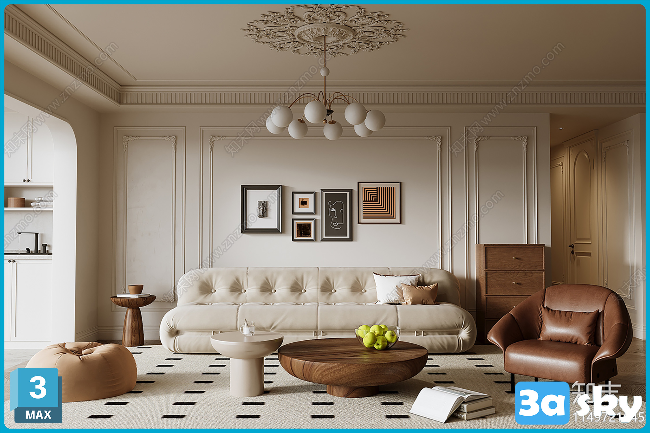 V_CR美式复古家居客厅_沙发茶几组合_单人沙发_茶几吊灯_边几柜_装饰画3D模型ID_1149721645.rar